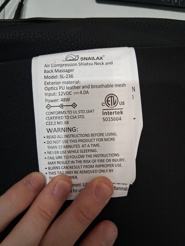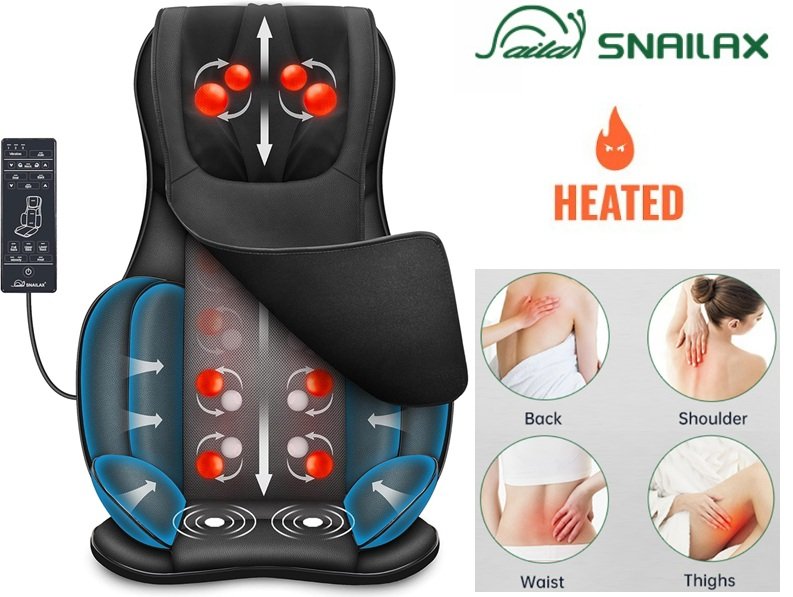 Snailax shiatsu heated compression massage chair seat cushion with remote control- black (model: sl-236)