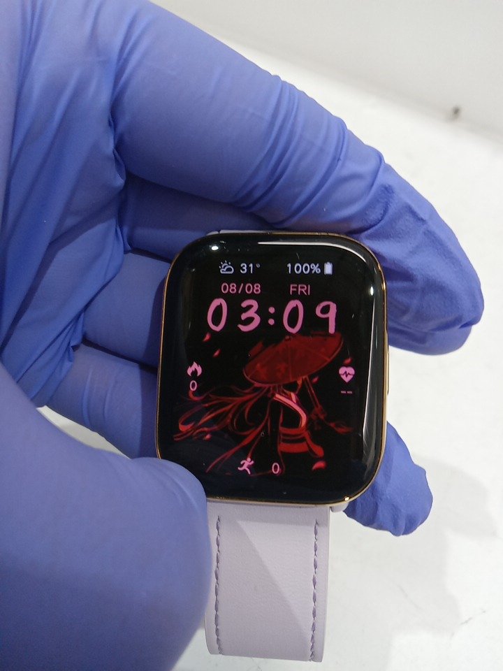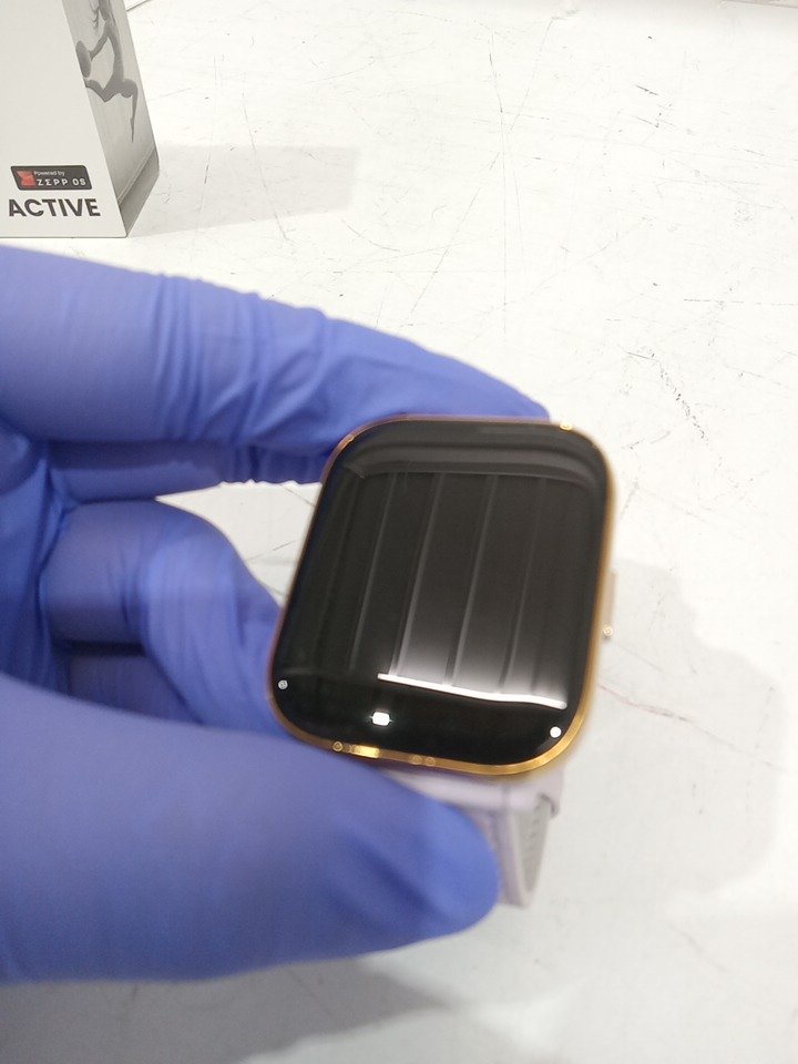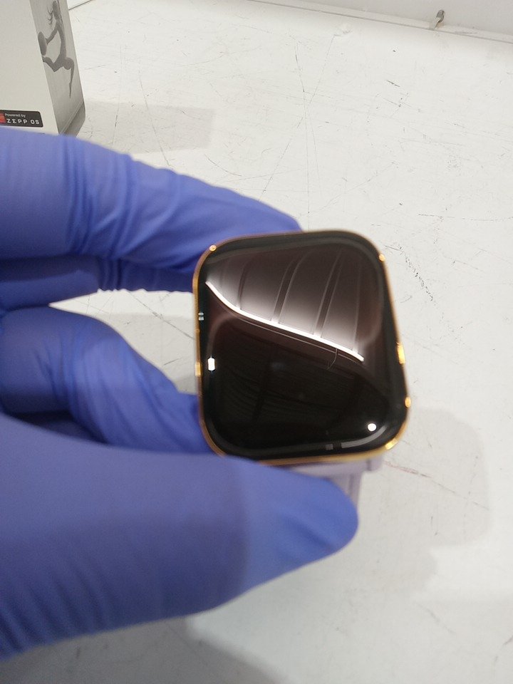 There are minor scratch marks on the screen and there are scratch marks on the base near the sensor. There are minor dirt residue on the straps. Tested for basic power only. (Please see photos)