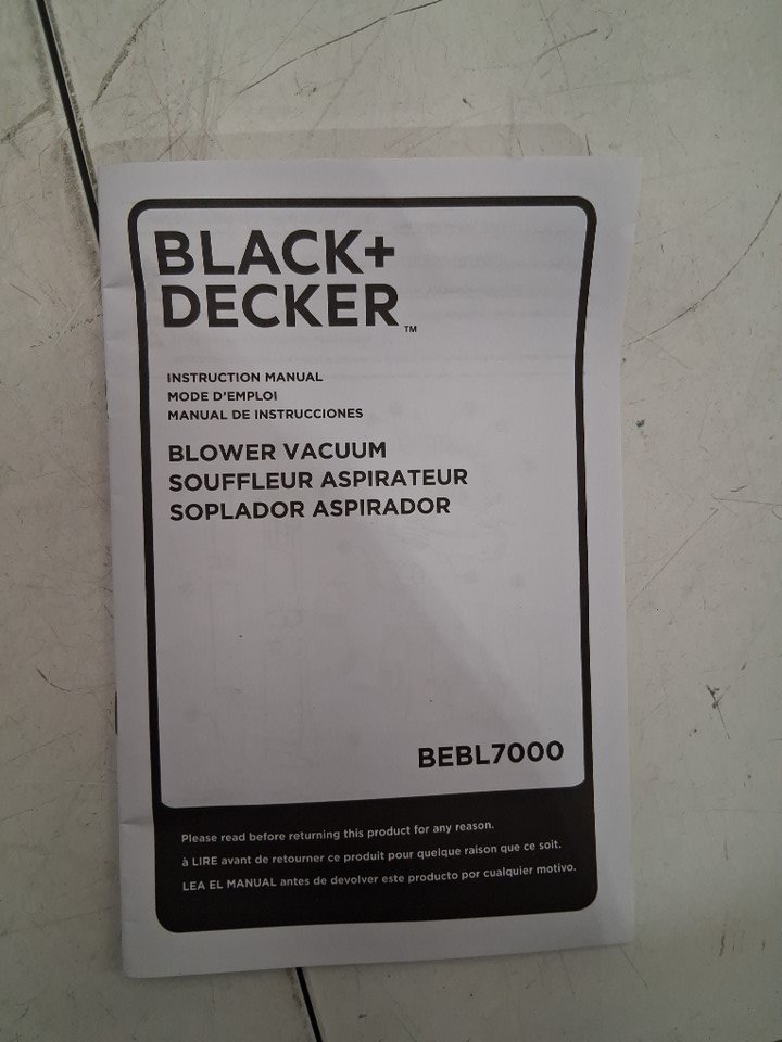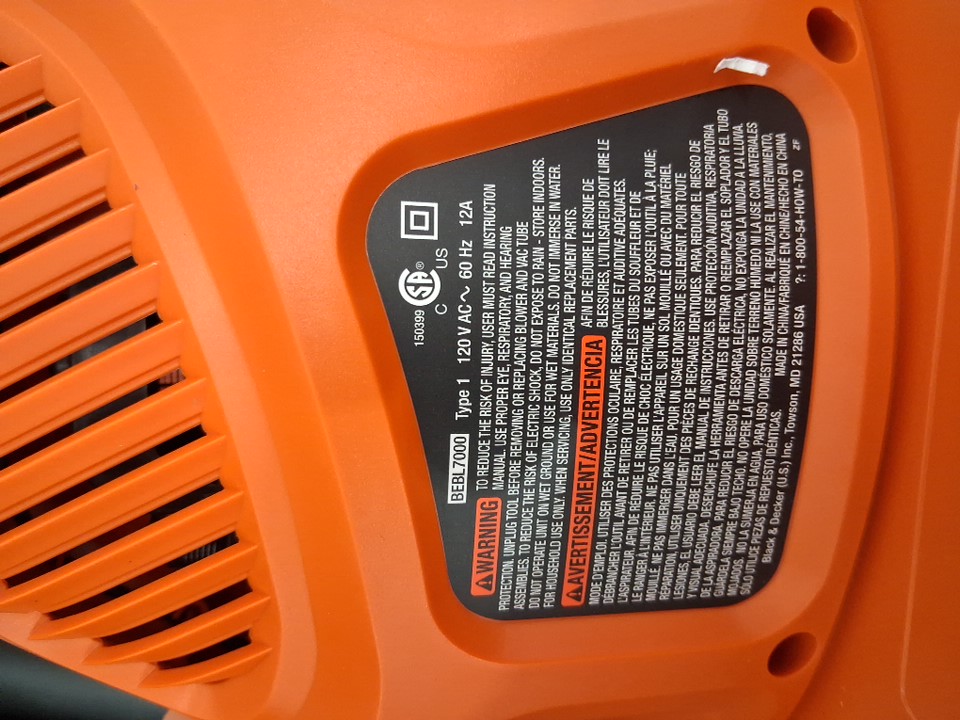 BLACK AND DECKER CORDED BACK PACK LEAF BLOWER, VACUUM & MULCHER - 250MPH - 400CFM - BLACK/ORANGE (MODEL: BEBL7000)