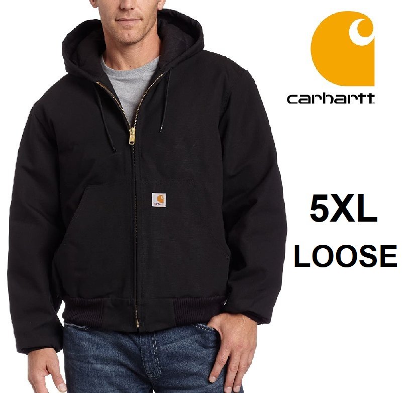 MEN'S CARHARTT QUILTED FLANNEL LINED DUCK ACTIVE JACKET, LOOSE FIT - 5xl loose fit - BLACK - (STYLE: OJ0140-M)