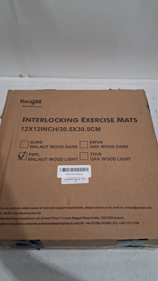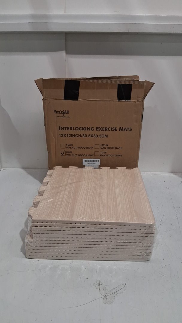 12PK Yes4All SHOCK ABSORBING EVA Interlocking HIGH DENSITY WATERPROOF Exercise Foam Floor Mats with Border for Gyms, Yoga, and Outdoor Workouts- 12" X 12"- 24 SQ FT- WALNUT WOOD LIGHT/LIGHT BROWN (MODEL:P9PL)