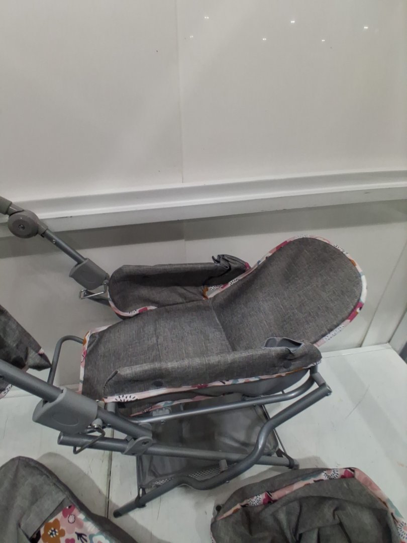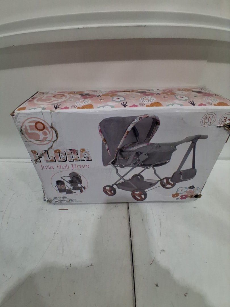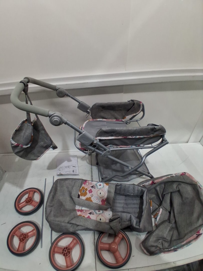 509 Deluxe Doll Pram Canopy, Storage Basket AND Bassinet - FITS 18" DOLLS - FLORAL / GREY