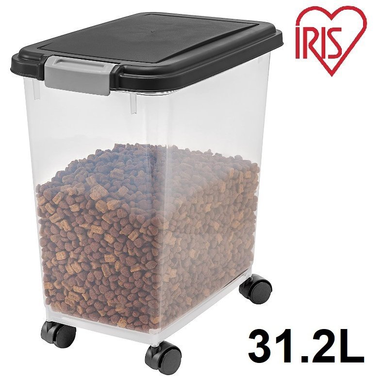 iris usa weatherpro airtight pet food container with wheels - 31.2l capacity - black/clear (model: mp8)