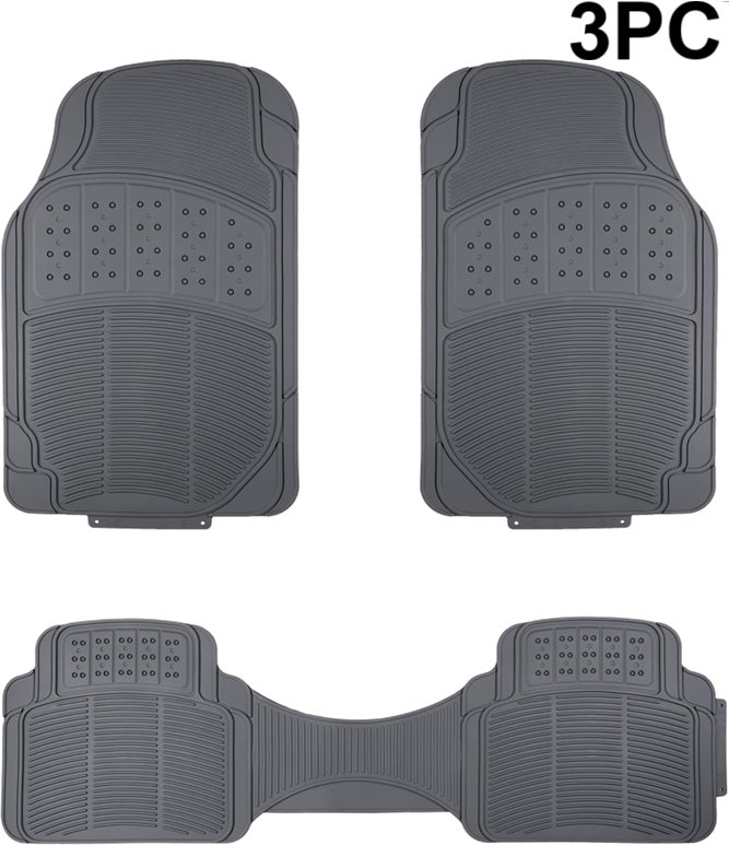 3PC amazon basics heavy duty pvc faux rubber universal car floor mats - trim to fit for 95% SUV, sedans, trucks - black