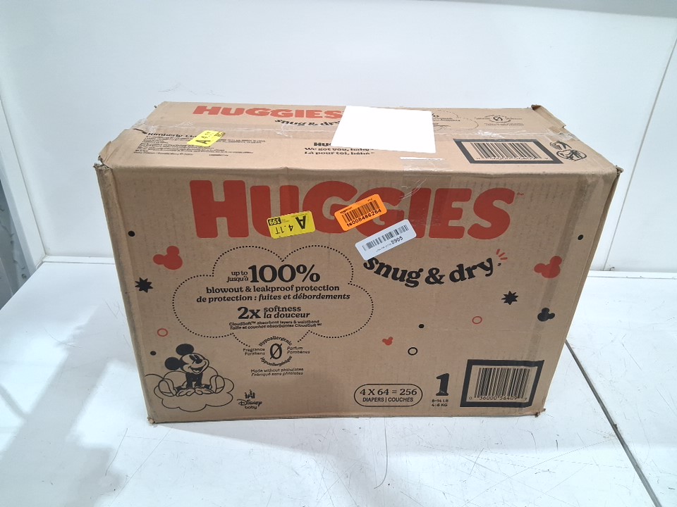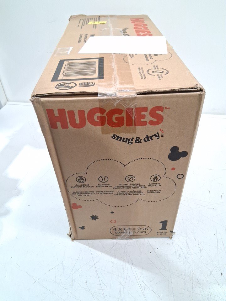 256PK HUGGIES SNUG AND DRY DIAPERS WITH TRIPLE LAYER PROTECTION - SIZE 1