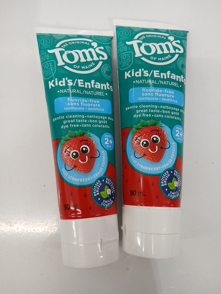2 kids tom's of maine natural fluoride-free toothpaste - 90ml each - silly strawberry
