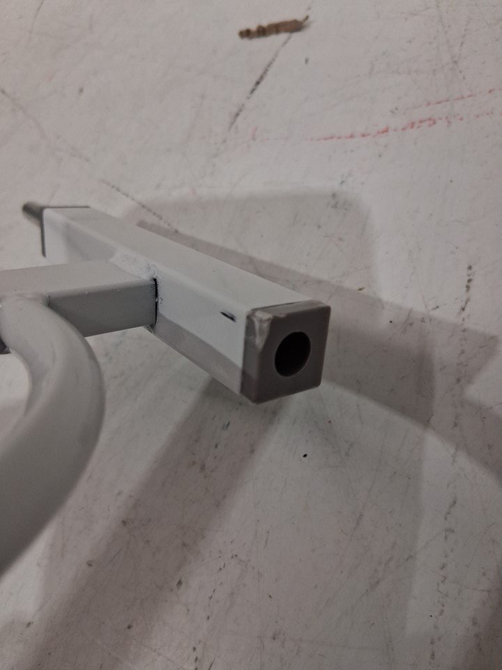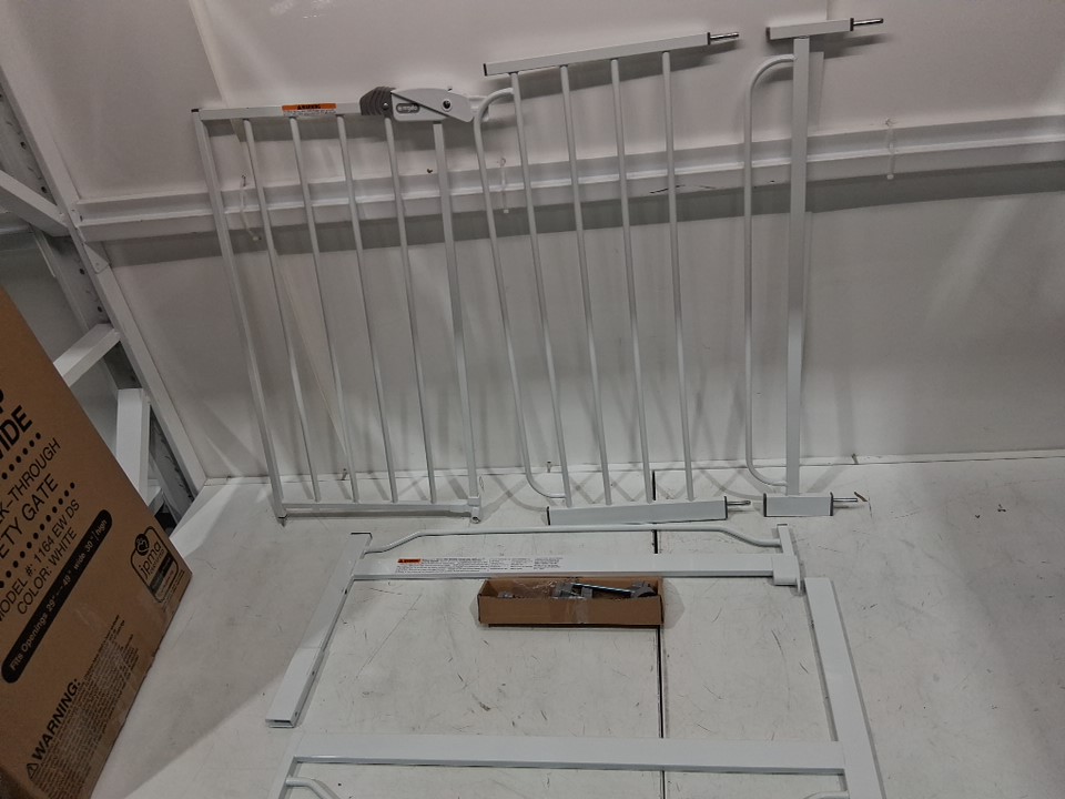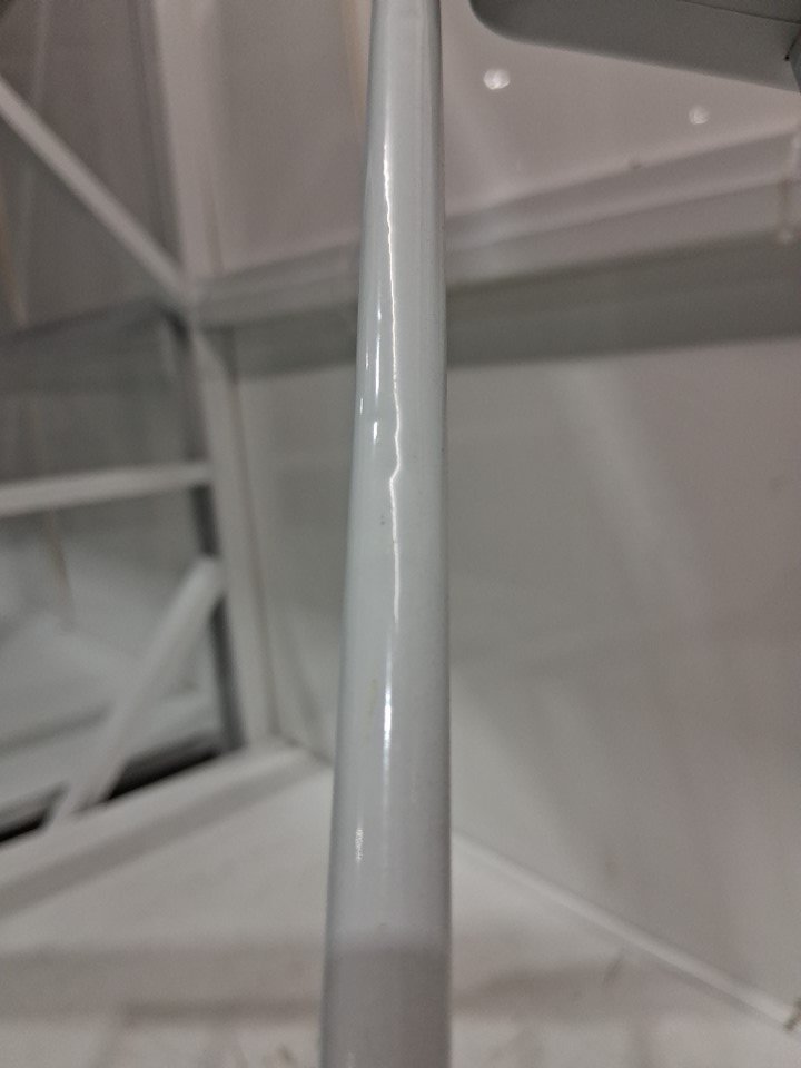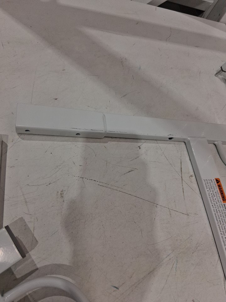 very small dents on one of the bars and some scratch and scuff marks on the gate indicating prior use