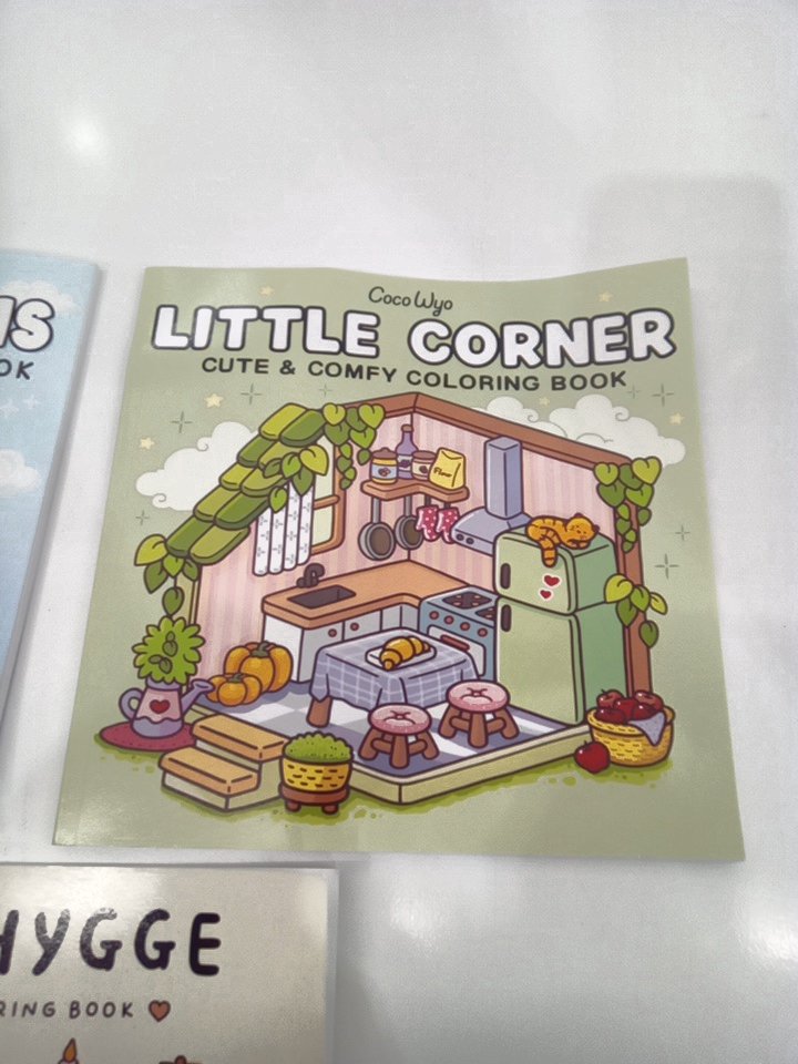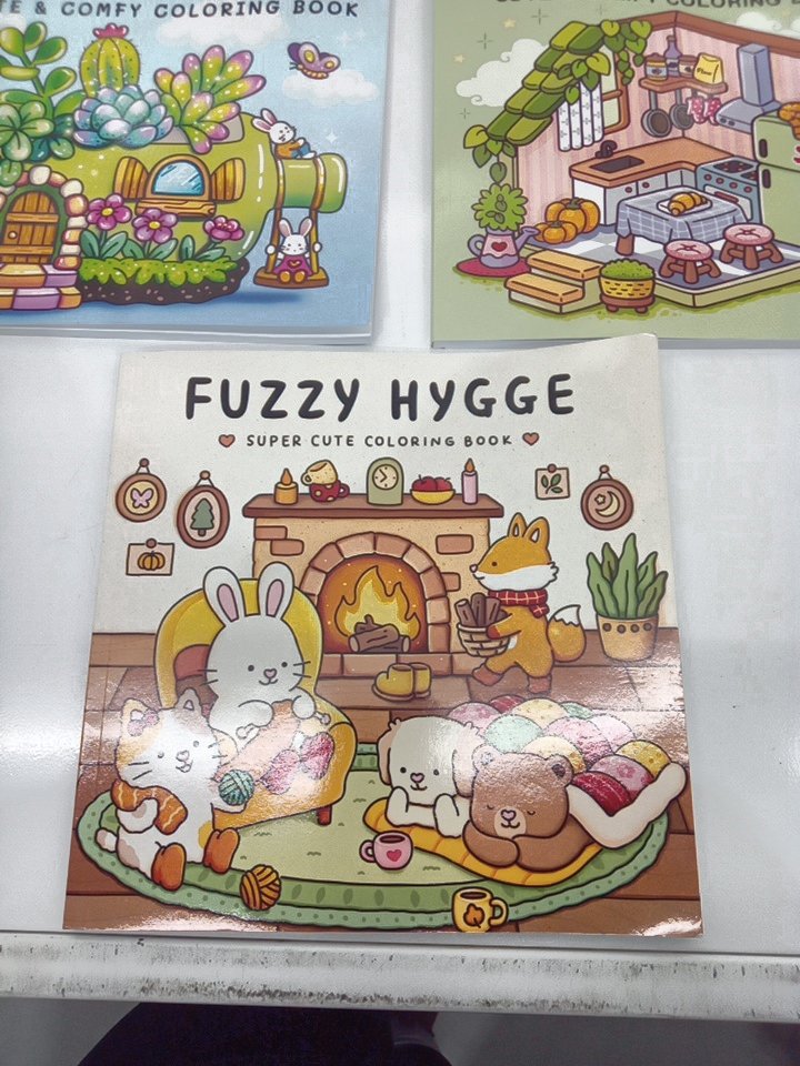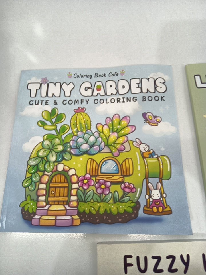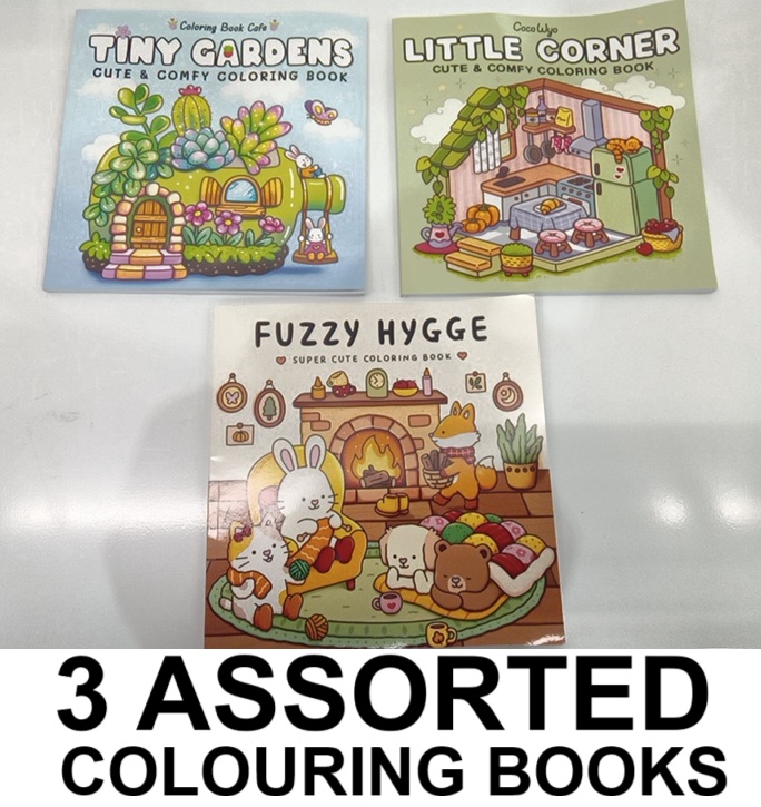 3 ASSORTED colouring books- fuzzy hygge/ little corner/ tiny garden
