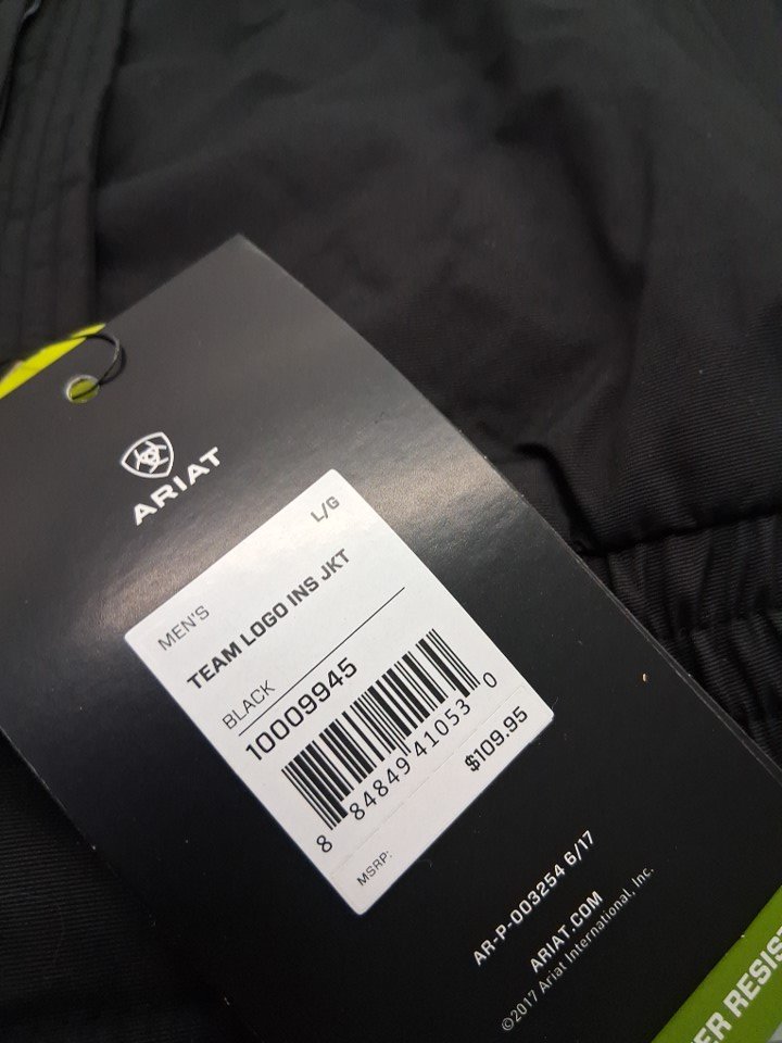 Men's ARIAT Team Logo Insulated Jacket - LARGE - BLACK / GOLD