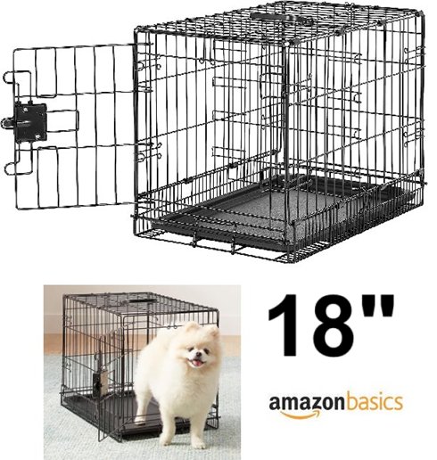 Amazon Basics Single Door Foldable Metal Wire Dog Crate with Tray - 18" x 12.4" x 15" - black