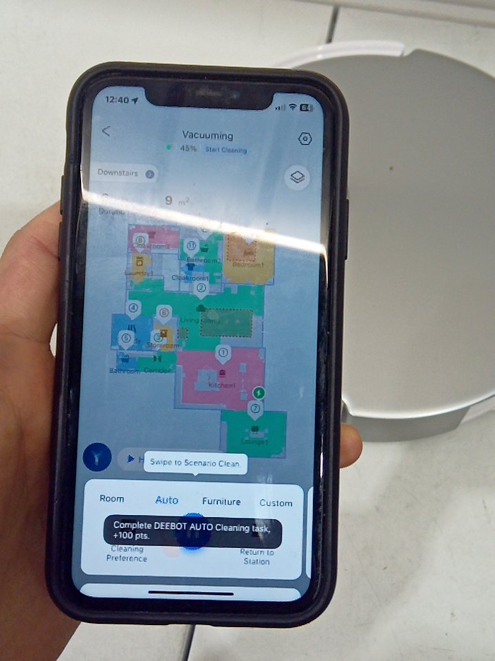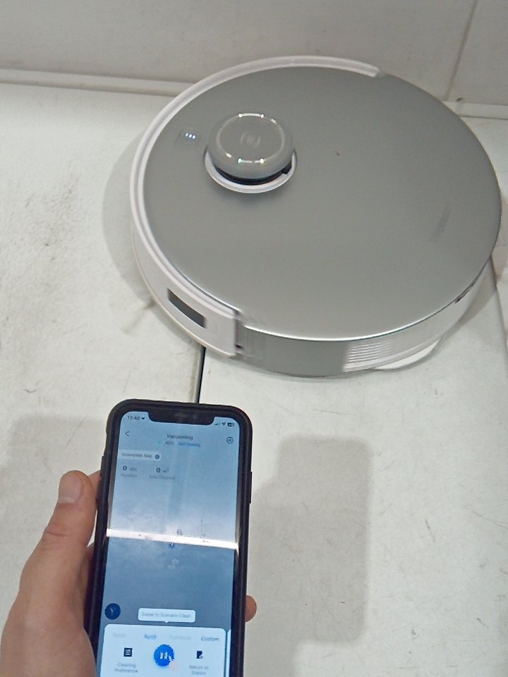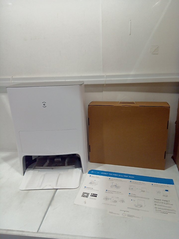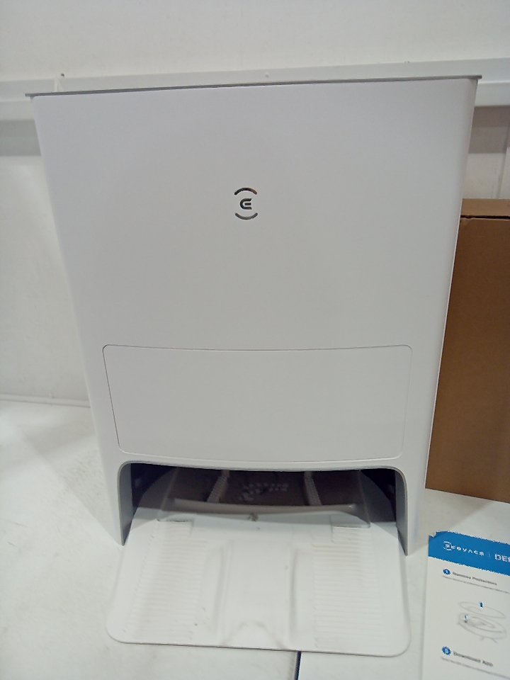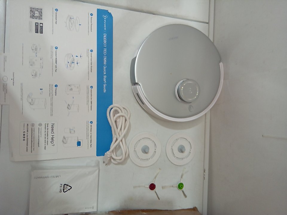 There is dirt and dust on the vacuum and base. Ours is missing the fabric on the mop pad attachments. Tested for power, movement and returning to base with Ecovacs mobile app. (SEE PHOTOS)