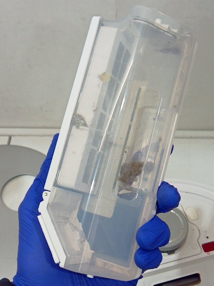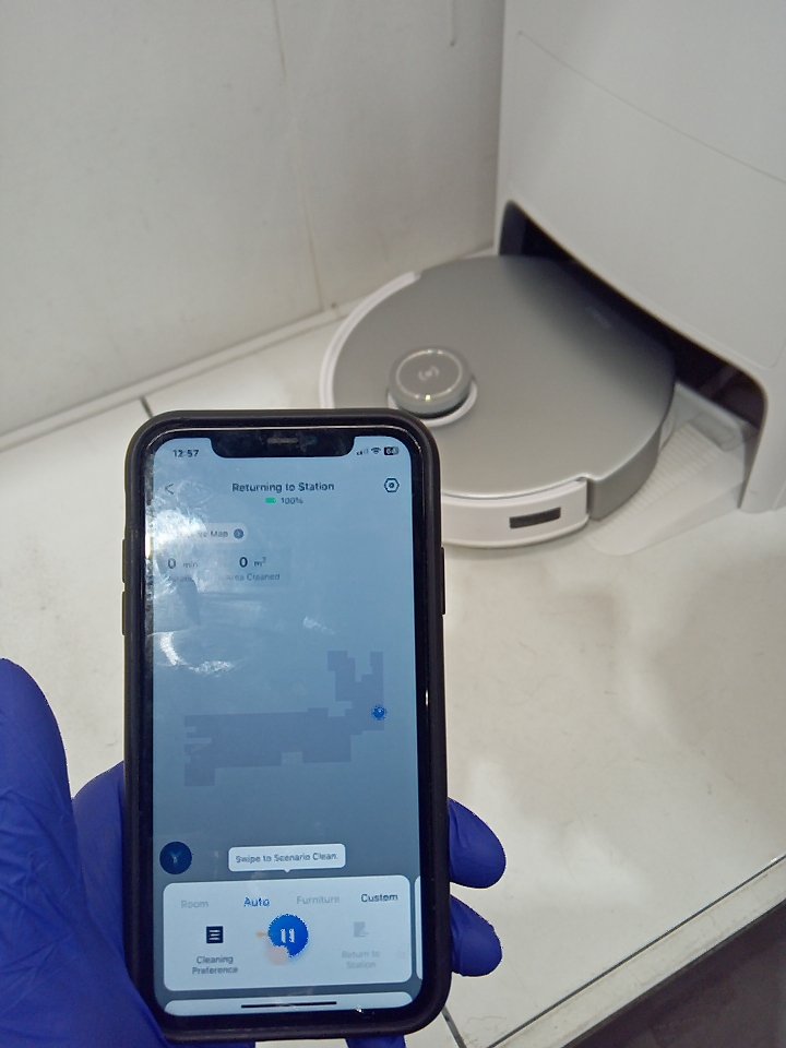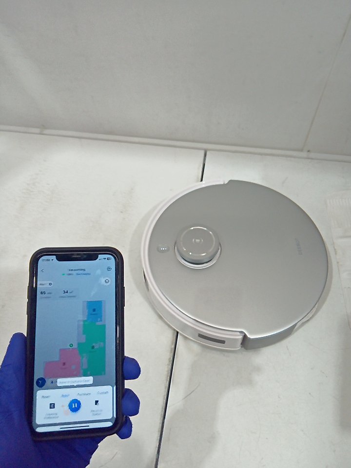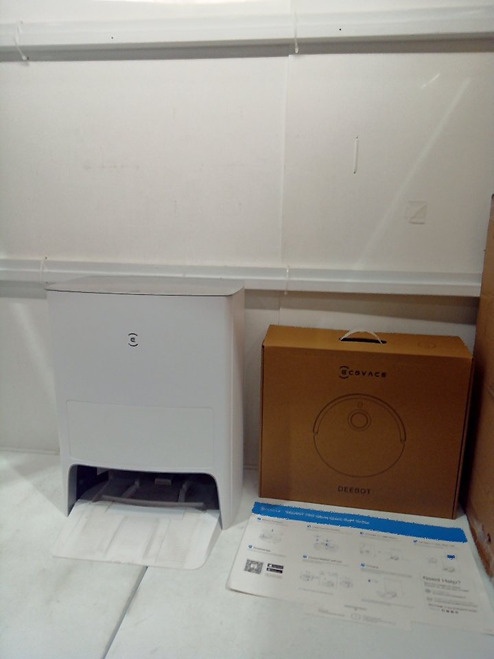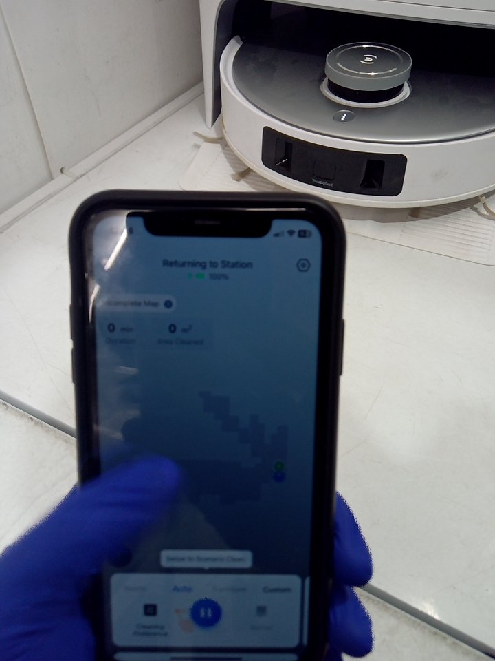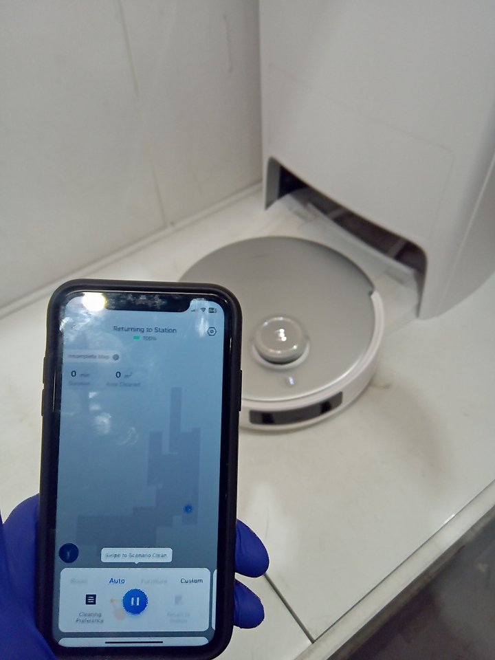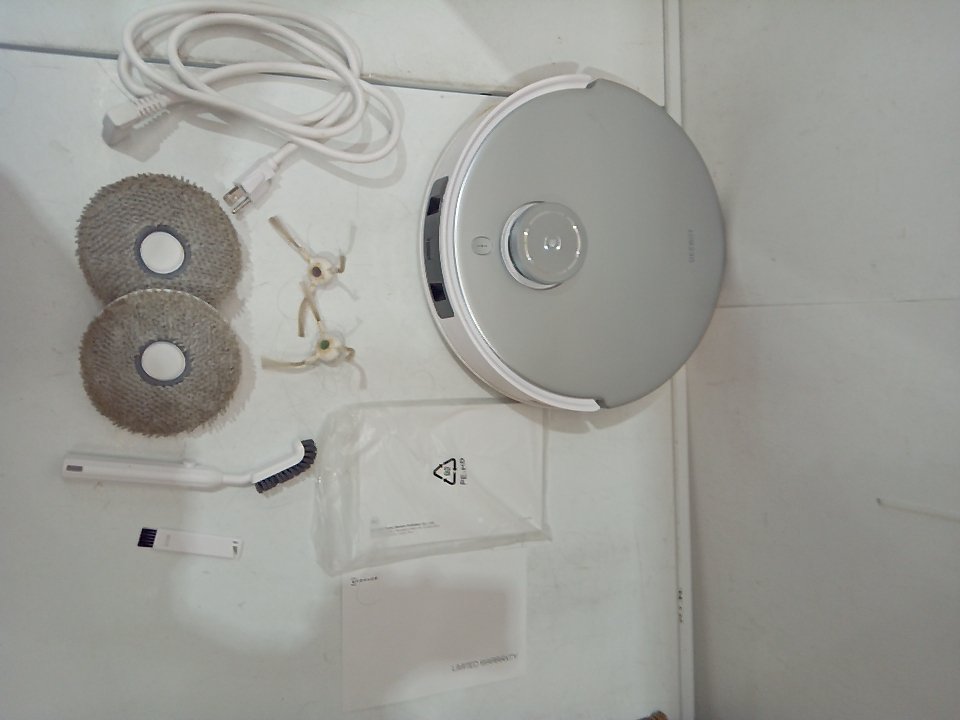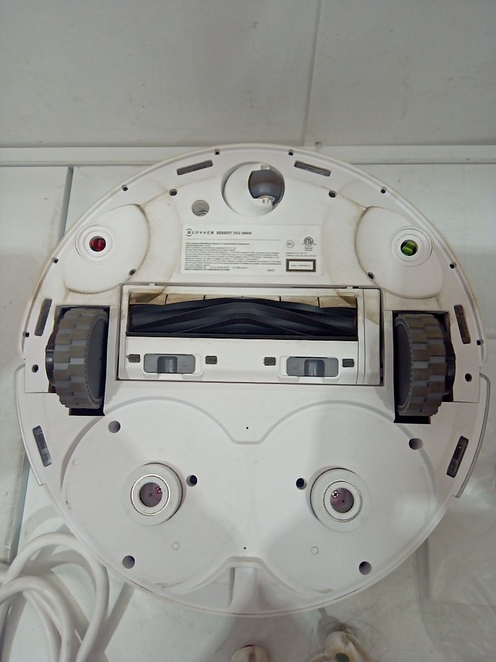 There are scratches, dirt and dust on the bottom and sides of the vacuum and base. The spinning brush pieces are bent and have some traces of pet hairs on them. Tested vacuum for power, movement and returning to base with Ecovacs mobile app. (SEE PHOTOS)