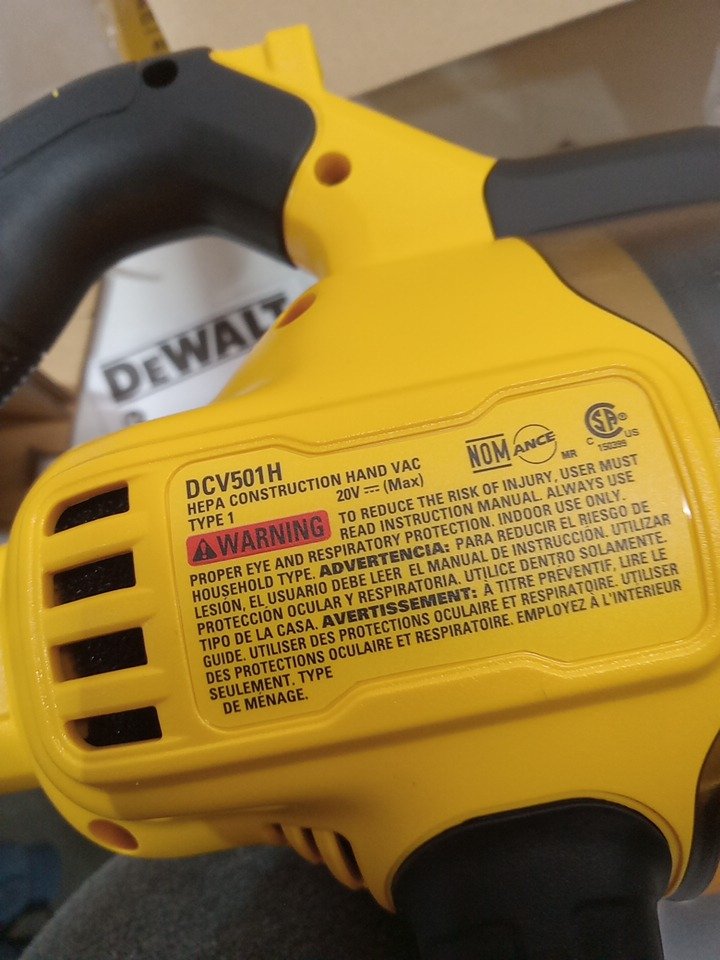 DEWALT CORDLESS HANDHELD VACUUM *TOOL ONLY* - 20V - YELLOW (MODEL: DCV501HB)