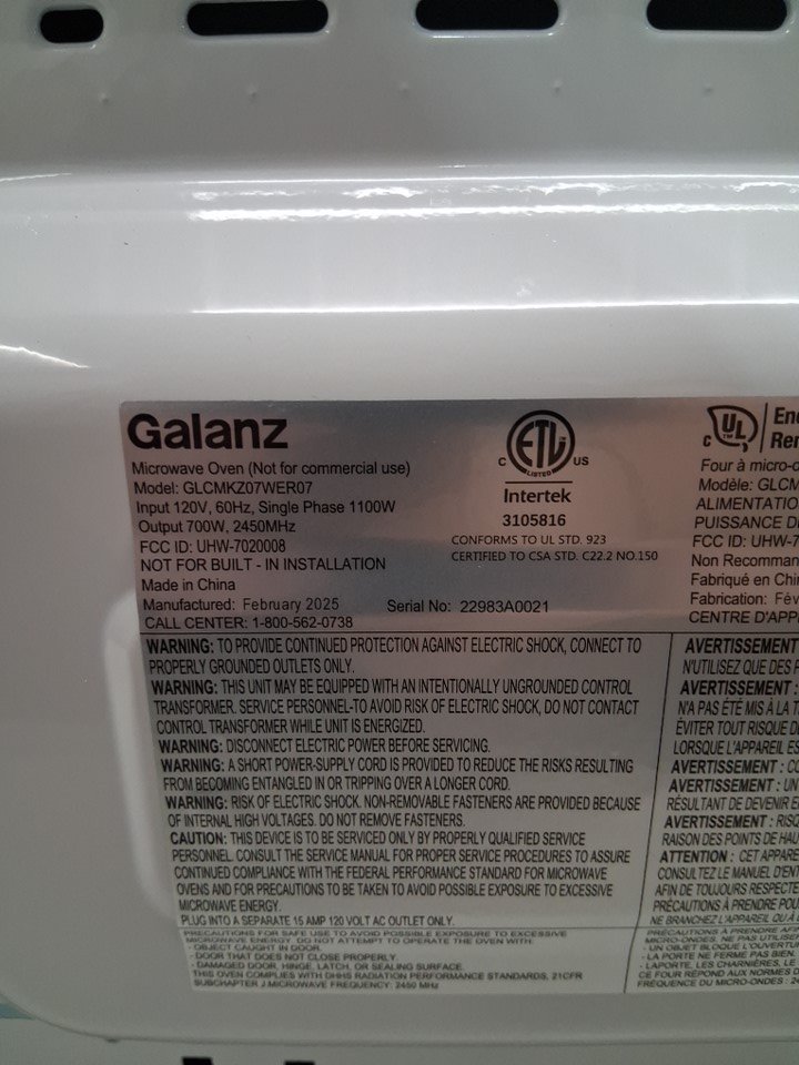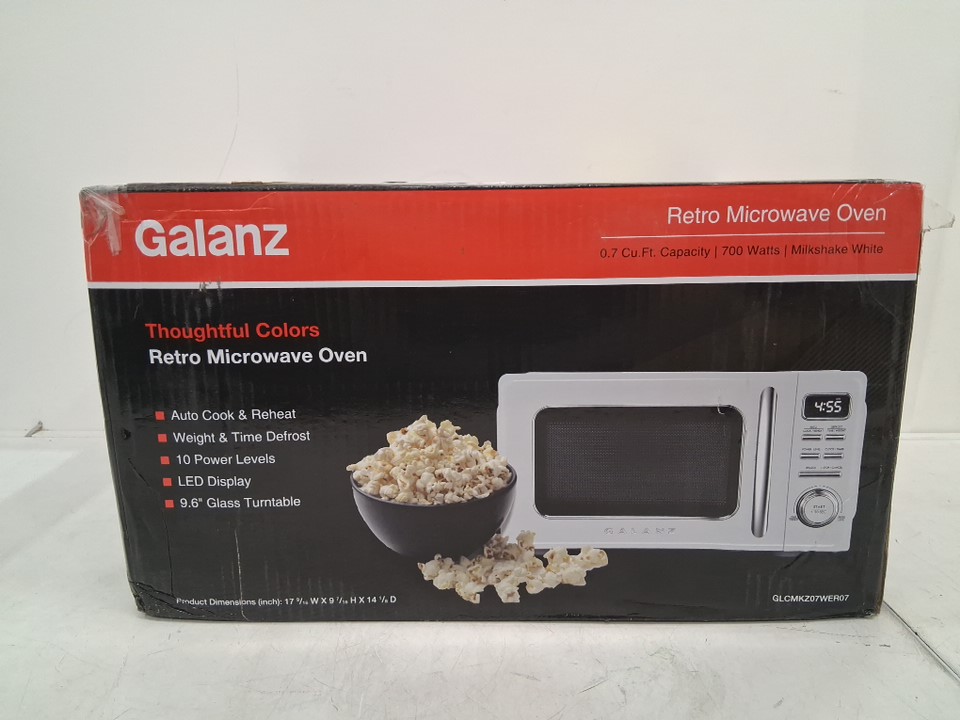 GALANZ RETRO STYLE COUNTERTOP MICROWAVE OVEN - 0.7CU.FT. - WHITE (MODEL: GLCMKZ07WER07)