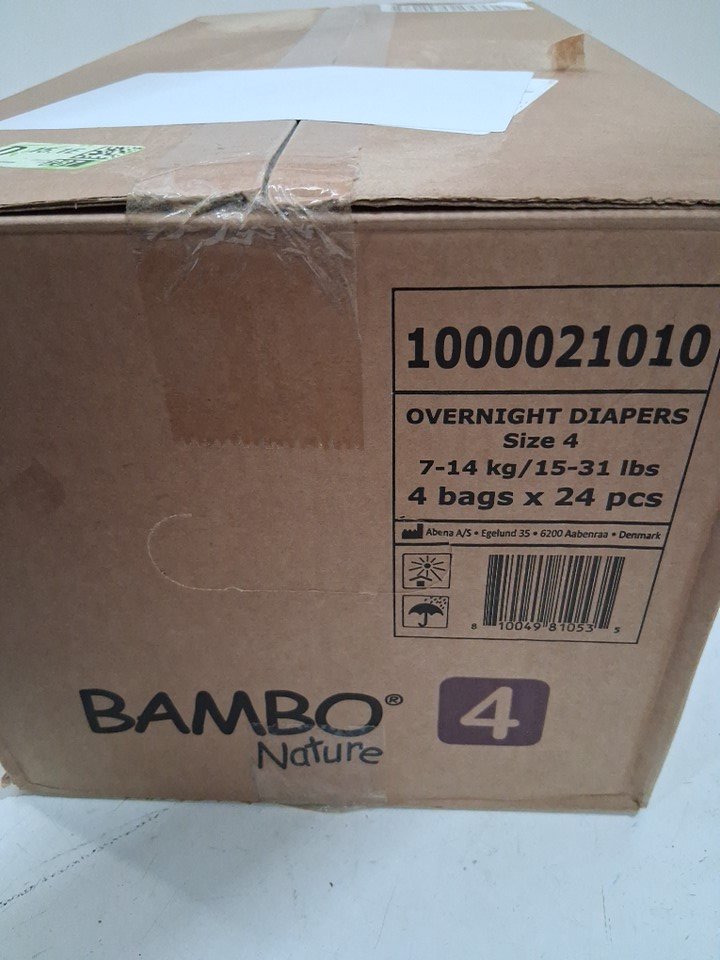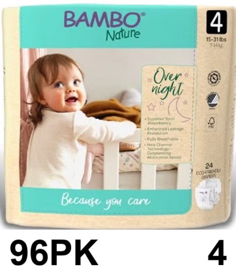 96PK Bambo Nature Overnight Baby Diapers - 15-31lbs, Size 4 - White