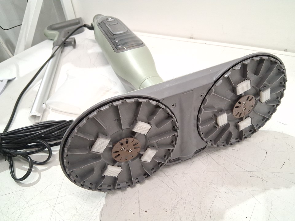 item has dirt, dust, and water marks from previous use and is missing the cleaning clothe pad - tested for power only