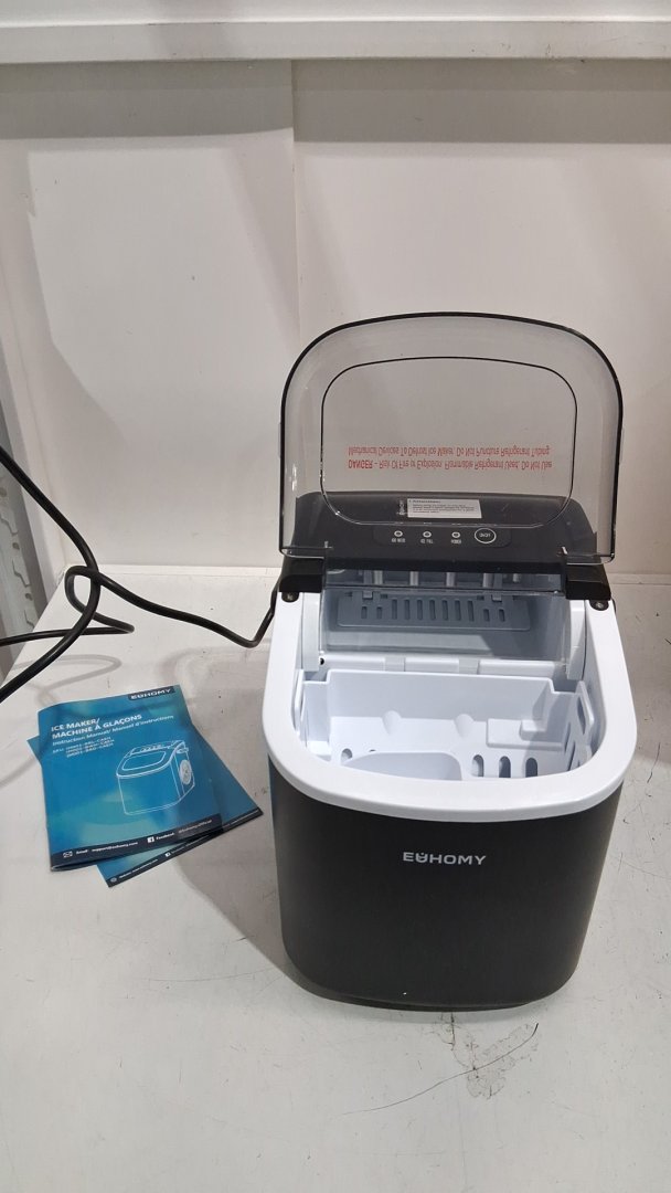 EUHOMY Countertop Ice Maker Machine with Handle, Basket and Scoop - MAKES 26LBS Per Day - BLACK - (MODEL:IM001-Bbl-CAEH)