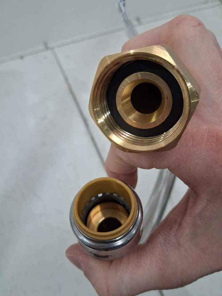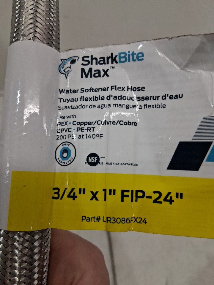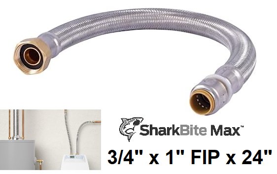 SharkBite Max Stainless Steel Braided Flexible Water Softener Connector - Push-to-Connect Brass Plumbing Fitting - 3/4" x 1" fip x 24" - stainless steel/brass (model: ur3086fx24)