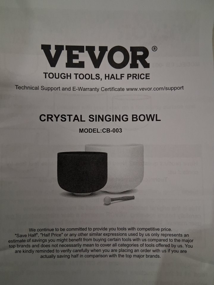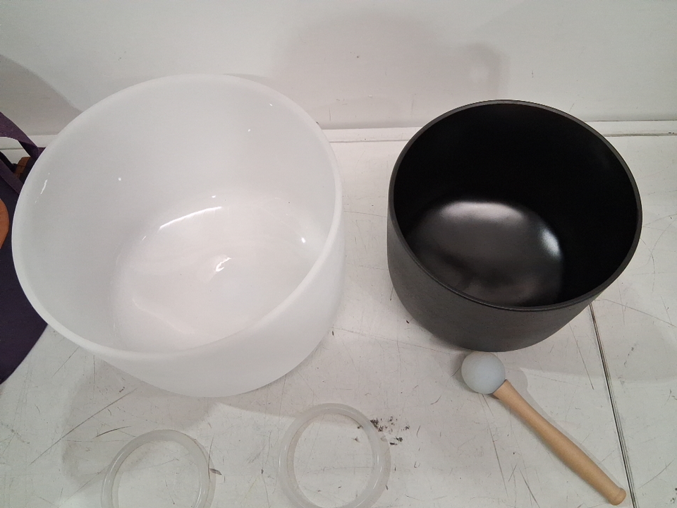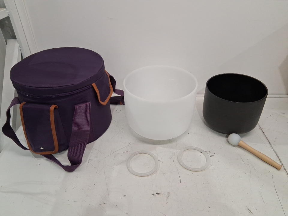 2PC Vevor Crystal Frosted Quartz Singing Bowls With Carrying Bag and Rubber Mallet - 8" & 10" Bowl - A & F Note (Model: CB-003)