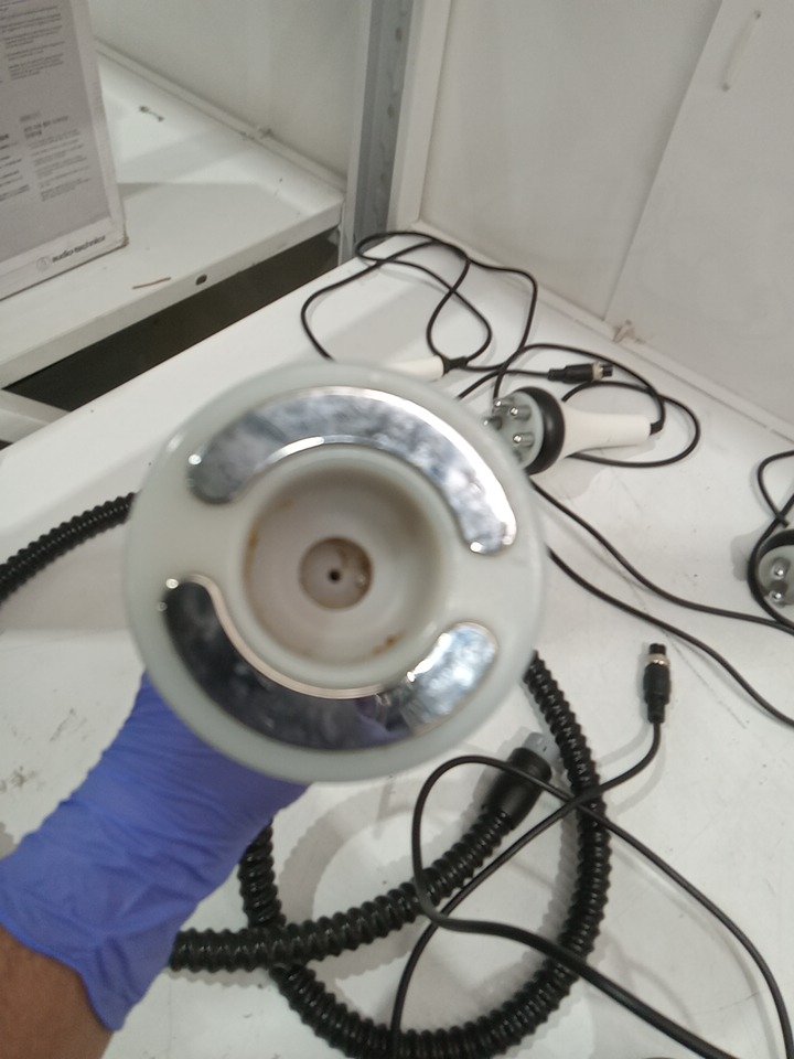 Please note that we are unable to identify the correct product or its details, as it arrived without any information. **Touchscreen not working, menu cannot be accessed** Please note that this product has an issue: the touchscreen is not working, so the next page or menu cannot be selected. The product has been previously used, including dirt stains and scratch marks on the unit and its attachments. It has been tested for basic power only. (Please see photos)