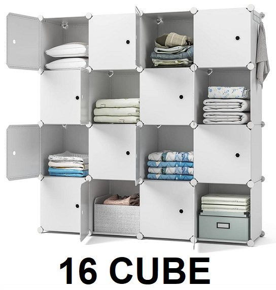 gimtrr Closet Organizer Cube Storage Shelf with Doors - 16 cubes - 48" x 12" - white - (model: ‎DMSL)
