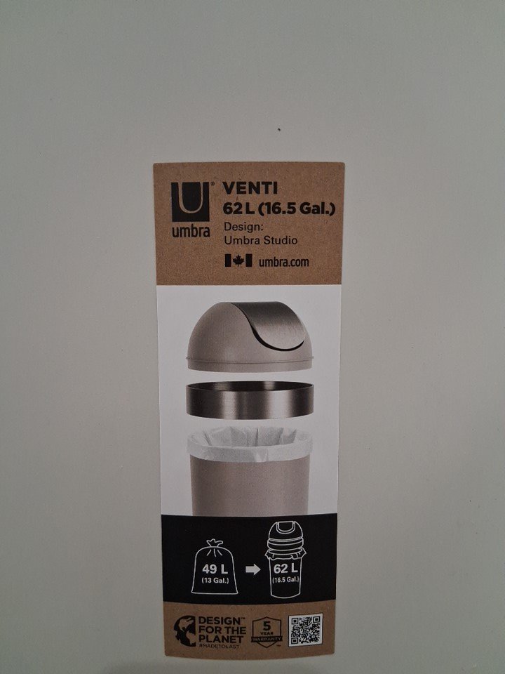 UMBRA VENTI SWING TOP KITCHEN TRASH CAN - 62L CAPACITY (HOLDS 49L BAGS) - Sand (model: 086758-1313-REM)