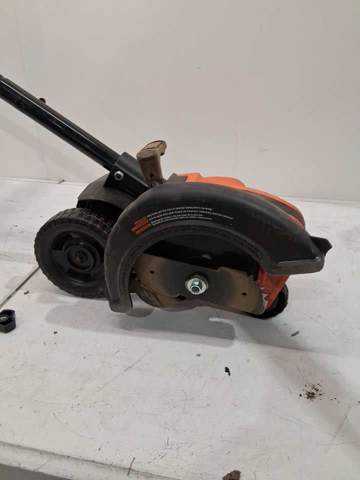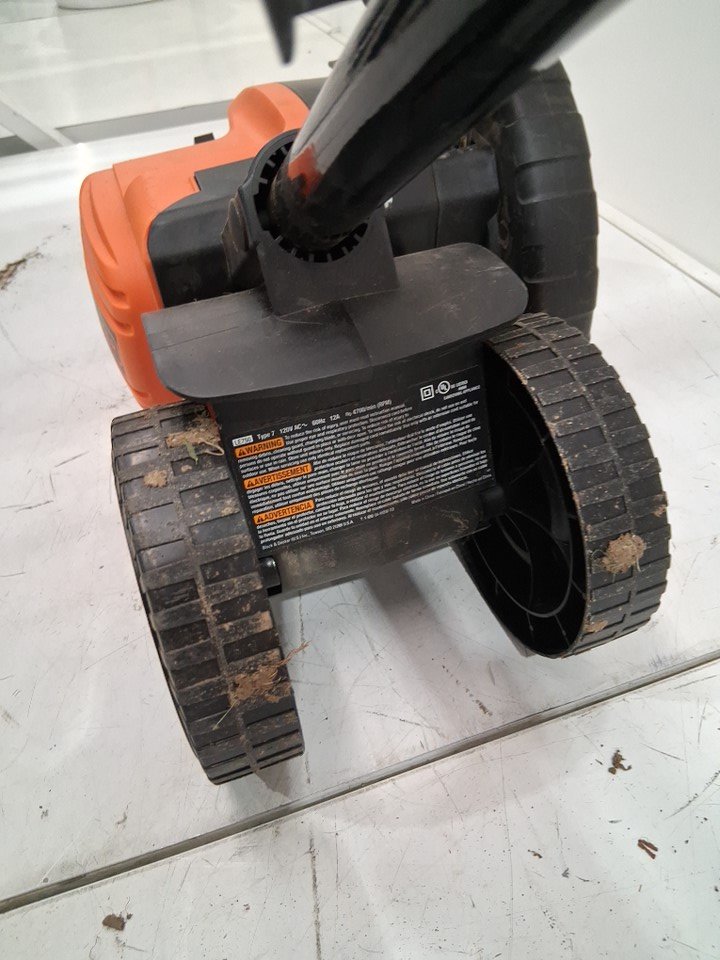 The product is covered in mud and dust from previous use especially the blade and the wheels of the product. Product was tested for power