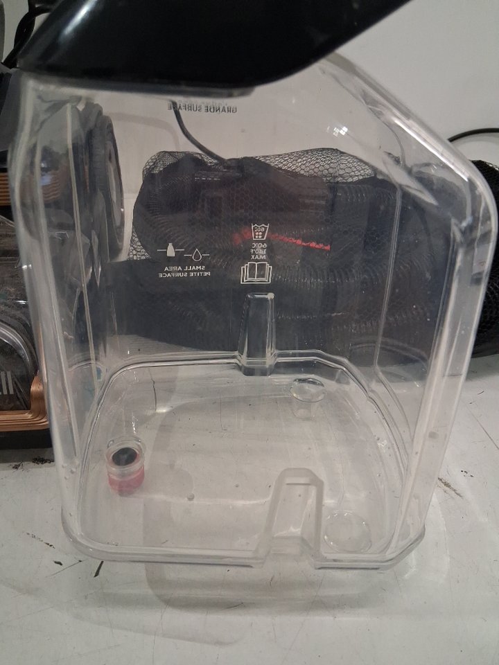 Tested for power. Please note the cleaner shows signs of previous use with dirt/debris in the base piece and one of the reservoirs, see photos.