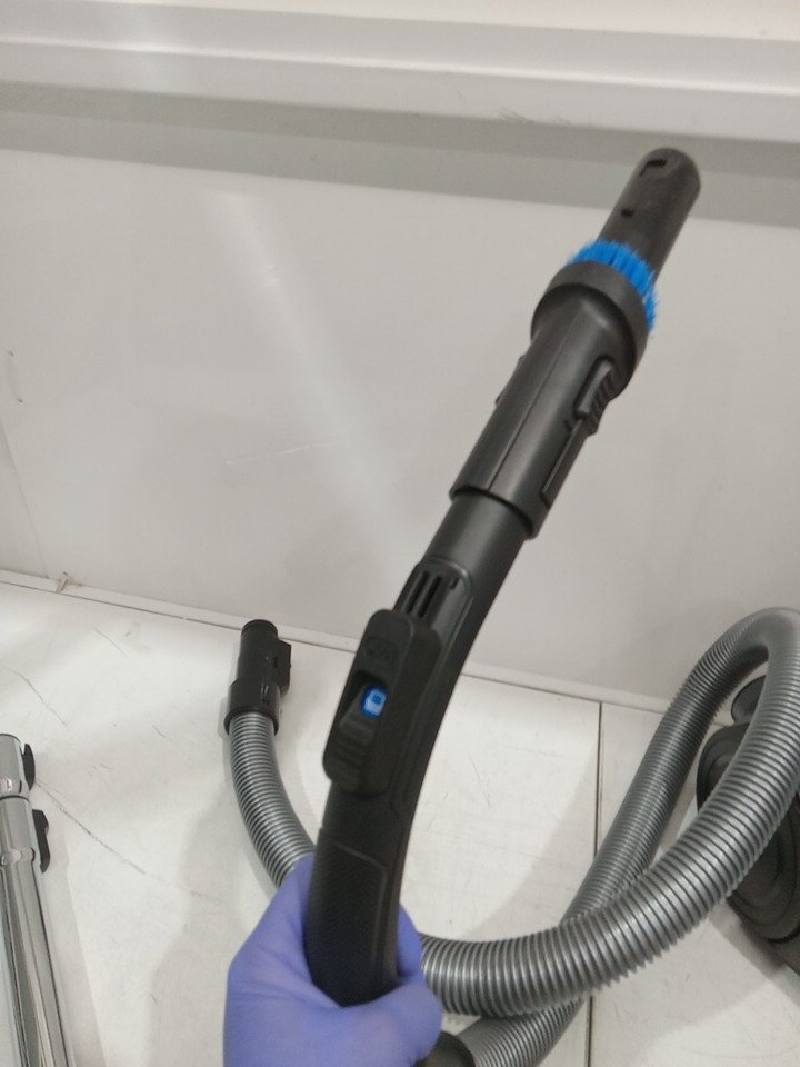 Please note that this product has been previously used. There are dust/dirt residue on the floor brush and on the filter catchment from previous use. There are white scratch marks on the sides. Recommended to be cleaned before use. Tested for power and motor function only. (Please see photos