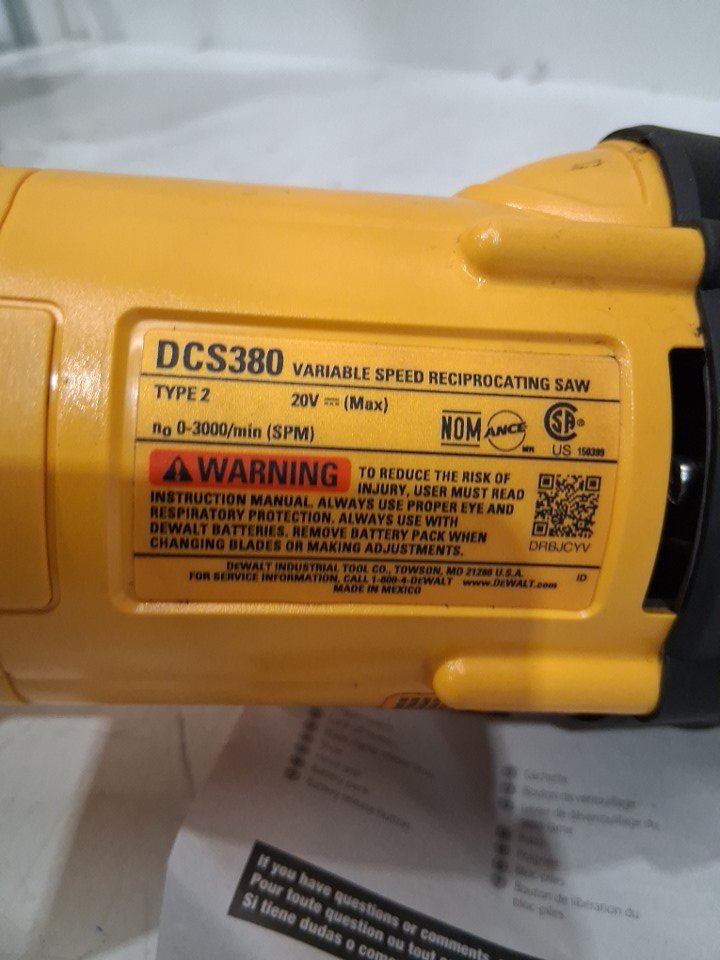 DEWALT Cordless Reciprocating Saw *tool only* - 20v - 1-1/8" stroke - yellow/black (model: DCS380B)