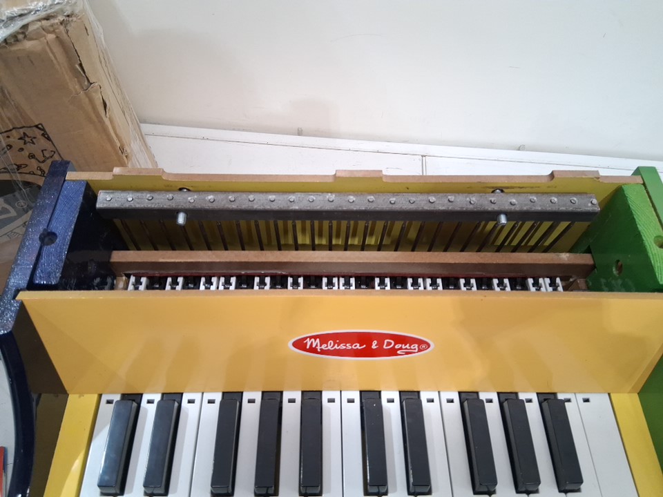 please note there are some scuffs and marks on the piano from previous use, It is really out of tune and there is a pad missing inside the piano, and a couple washers missing