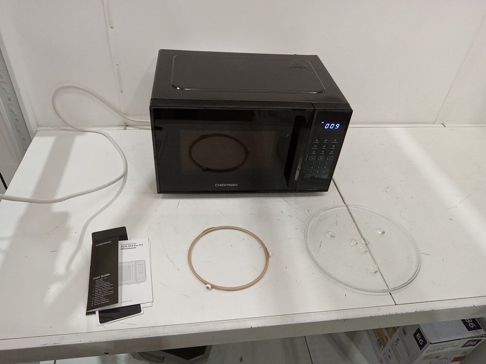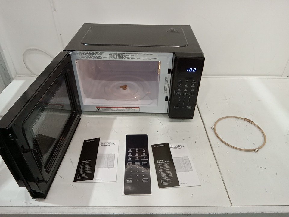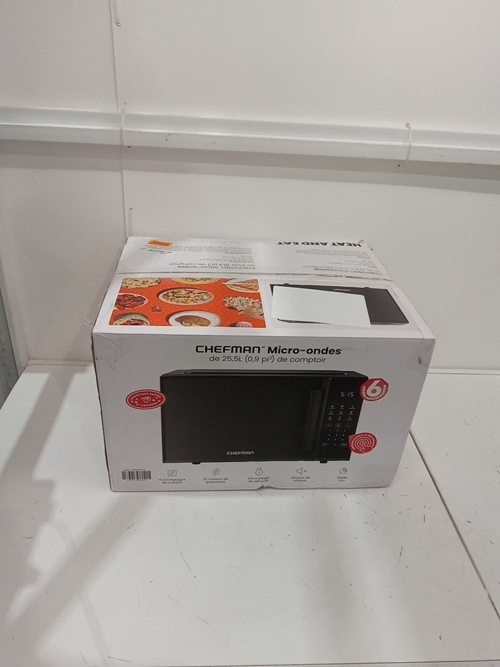 chefman countertop microwave oven with 10 power levels, 6 cooking presets, and child safety lock - 0.9 cu.ft - 900w - black (model: rj55-9-v2-ca)