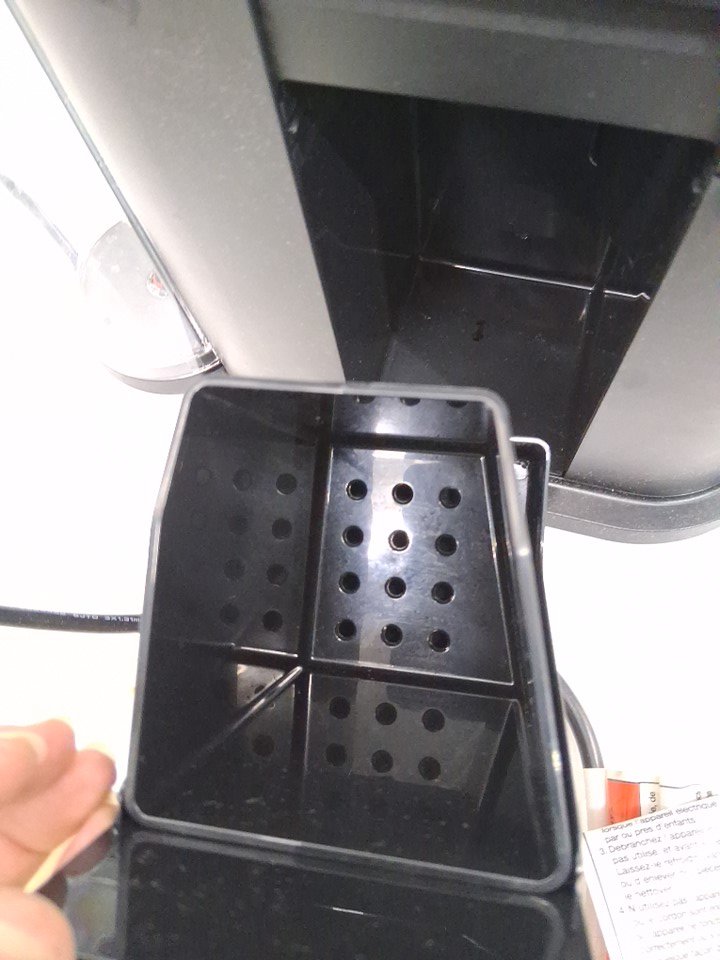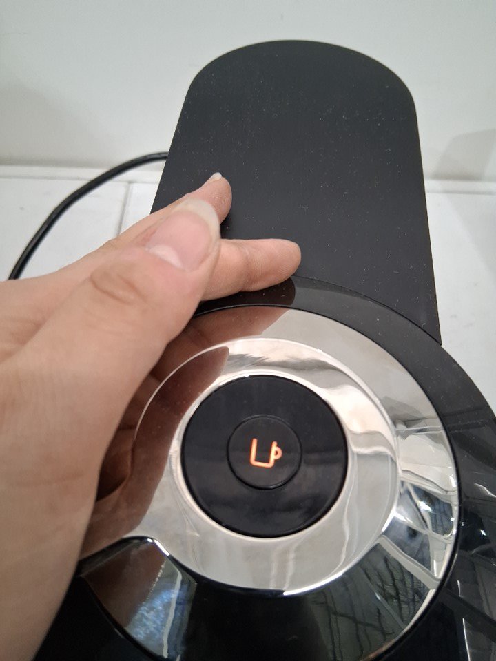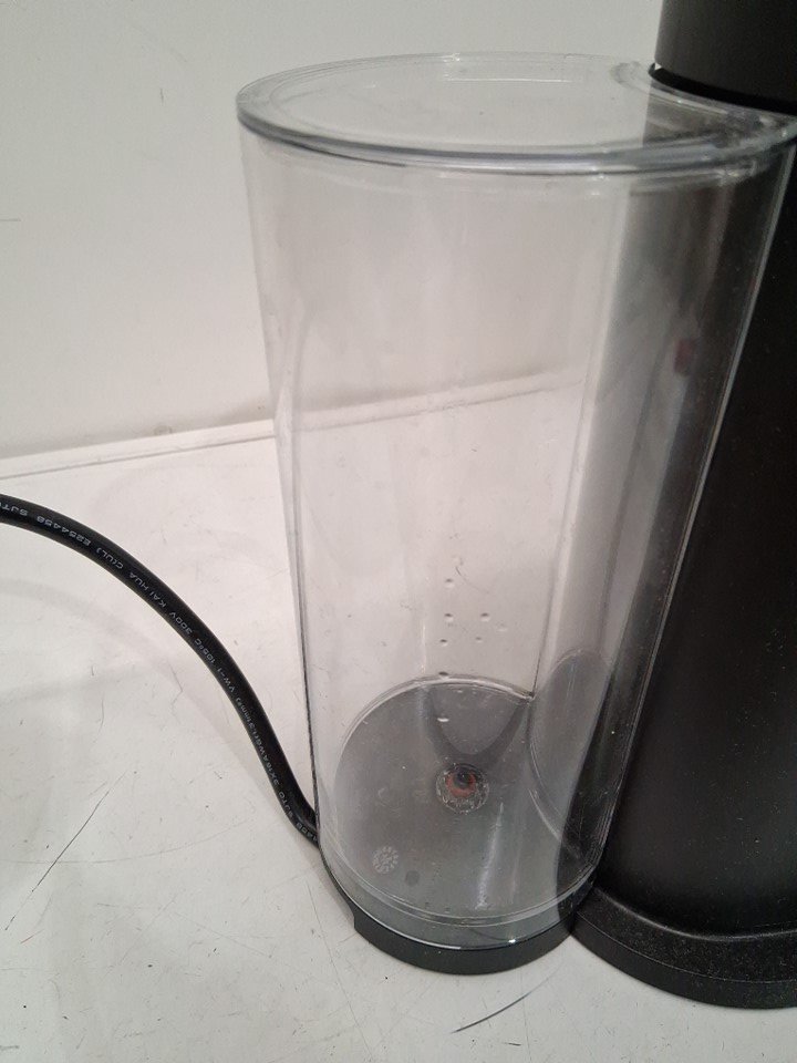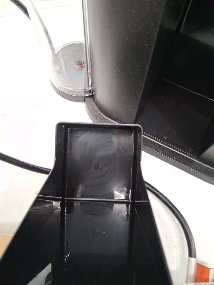 please note there are signs of previous use such as water droplets in the water chamber, light coffee grounds in the pod insert, fingerprints on the front, coffee in the drip tray and what appears to be wipe marks in the pod discharge tray from previous use. When tested for power an orange light appears to be present, most likely due to the machine needing to be cleaned/descaled