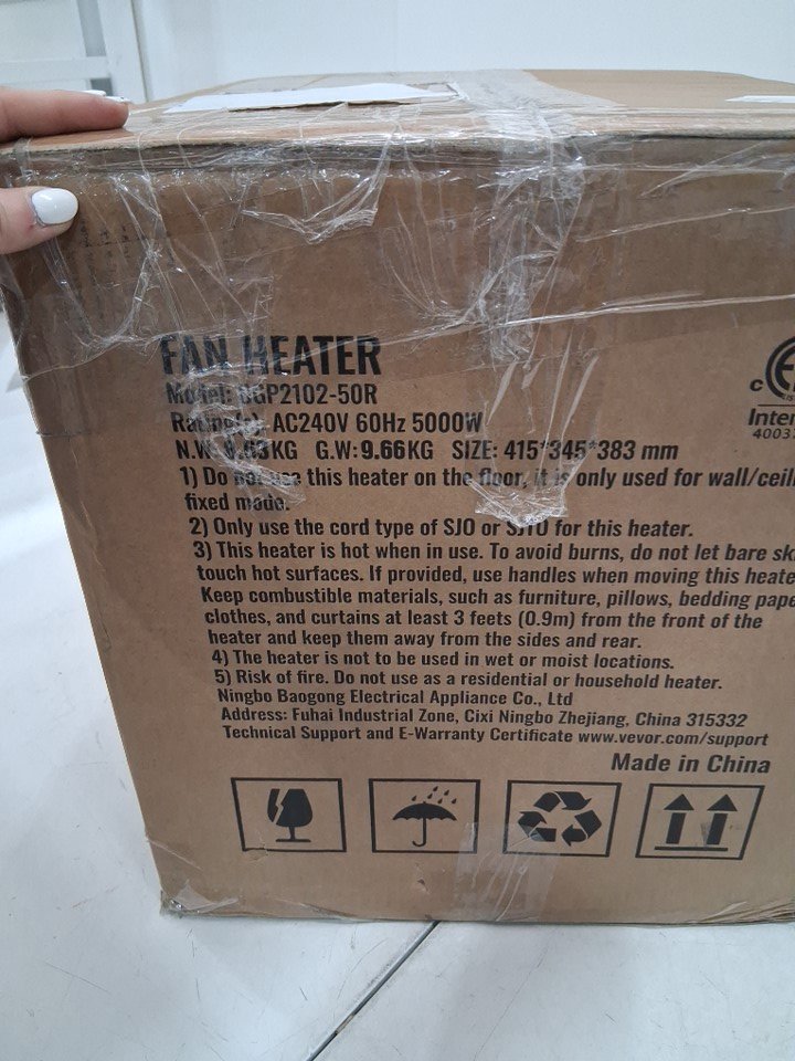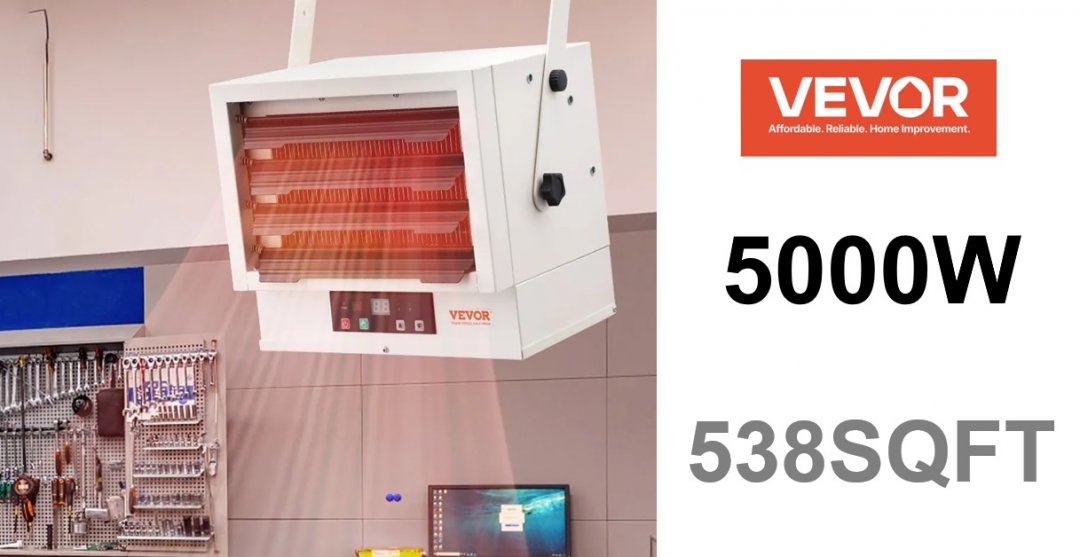 VEVOR Digital Fan-Forced Ceiling Mount Shop/Garage Heater W/ Remote Control & Overheat Protection, 5000W - 11" x 13" - WHITE - (MODEL: bgp2102-50r)