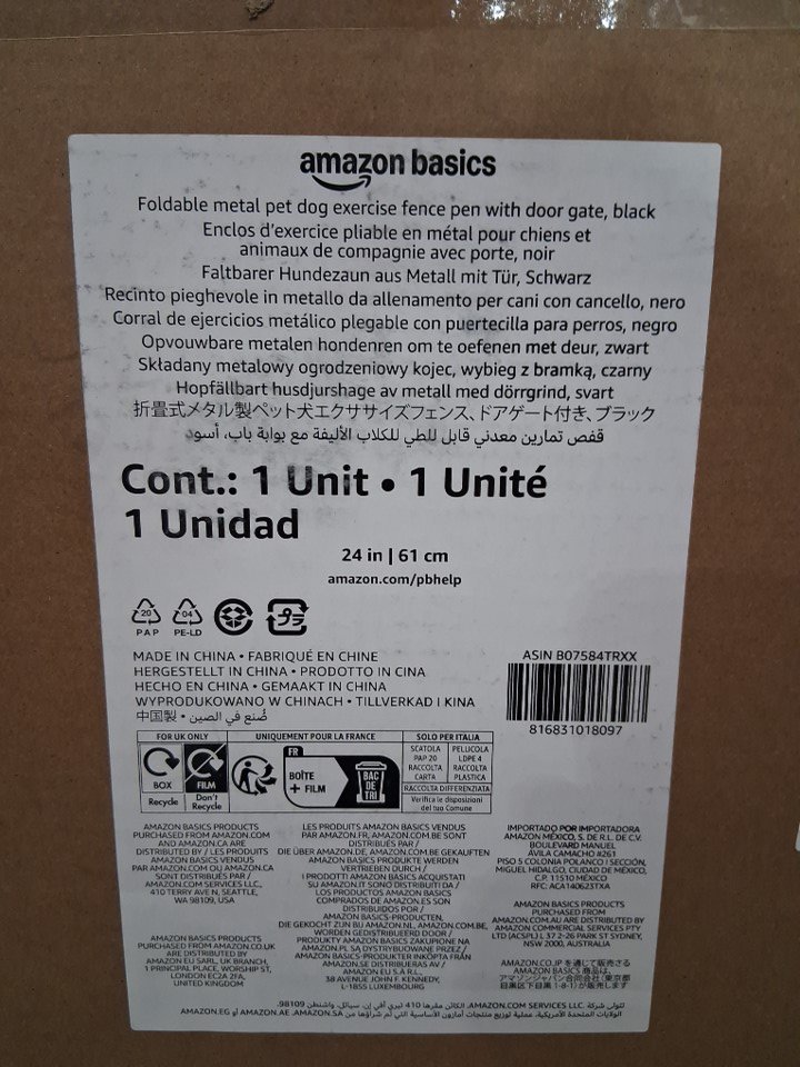 amazon basics Foldable Metal Pet Dog Exercise Fence Pen With Gate - 60" x 60" x 24" - black