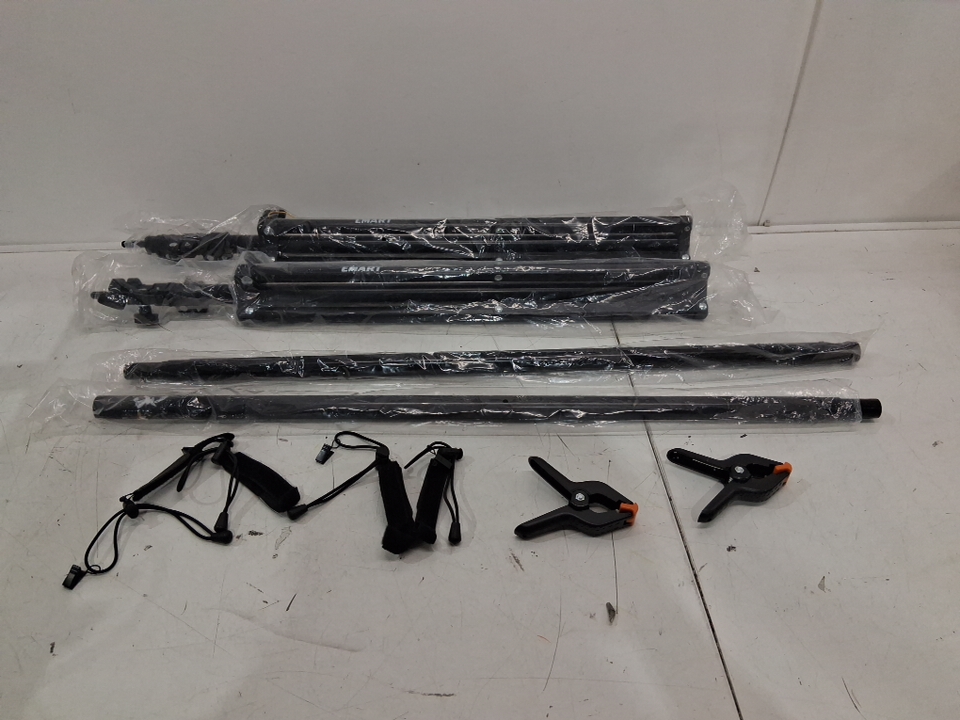 Please note: • The carrying bag is missing. • 4 of the clamps are missing, leaving only two. • The crossbars are already connected/inserted so there appears to be only two in the photos. • The sandbags are missing. • The poles show signs of previous use with scratches and paint residue, see photos.