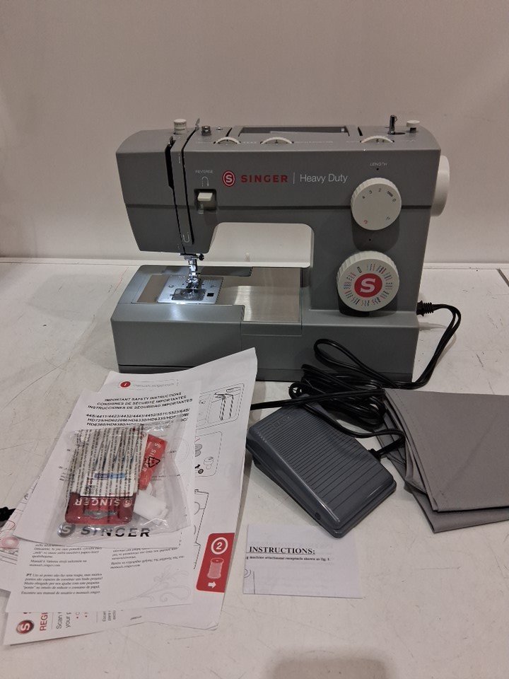 SINGER HEAVY DUTY SEWING Machine with Extension Table & Accessory Kit - Strong Motor with Enhanced Piercing Power, 110 Stitch Applications, Full Metal frame, 1-step Buttonhole & LED Light - GREY (MODEL: HD6380M)