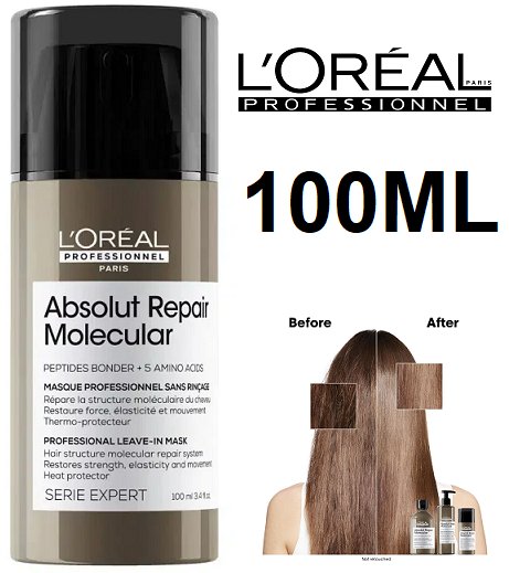 l'oreal professionnel paris absolut repair molecular professional leave-in mask - restores strength, elasticity, and movement - 100ml