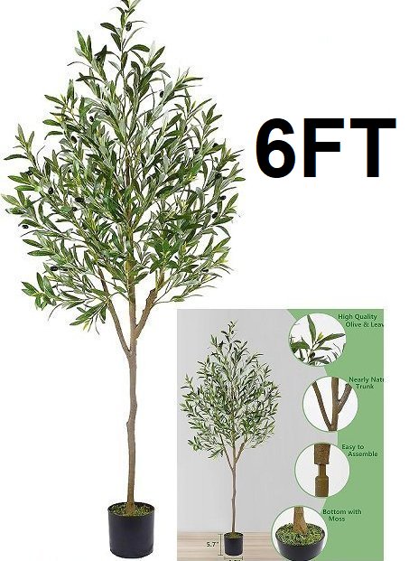 realeaf ARTIFICIAL PLANTS FAKE DECORATIVE OLIVE TREE - 6FT - green