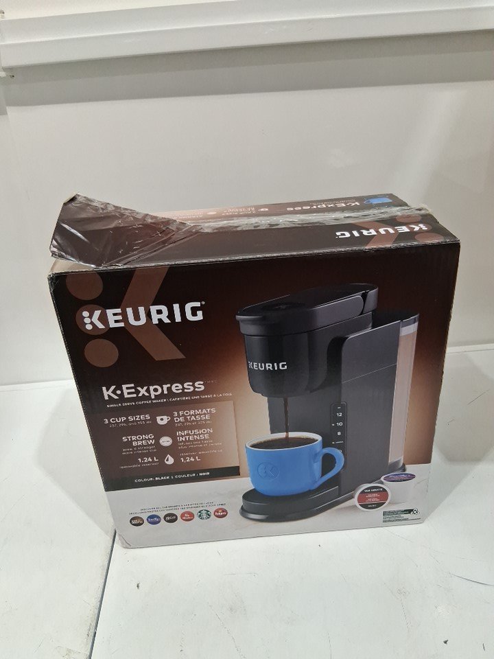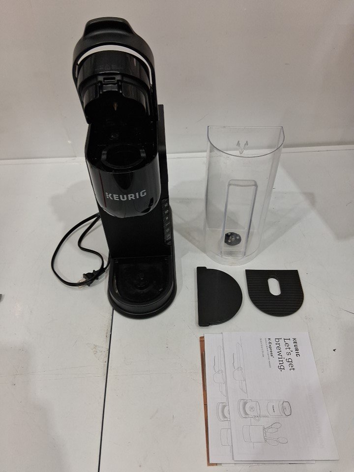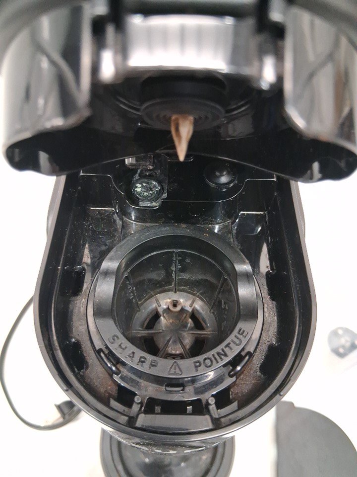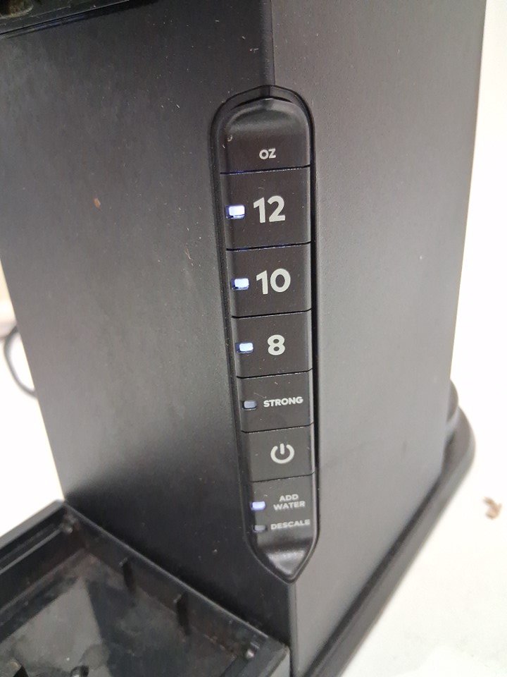 Item shows previous signs of use such as water marks and coffee grounds inside/outside unit. Items handle appears to stay open even when closed. Item tested for power.
