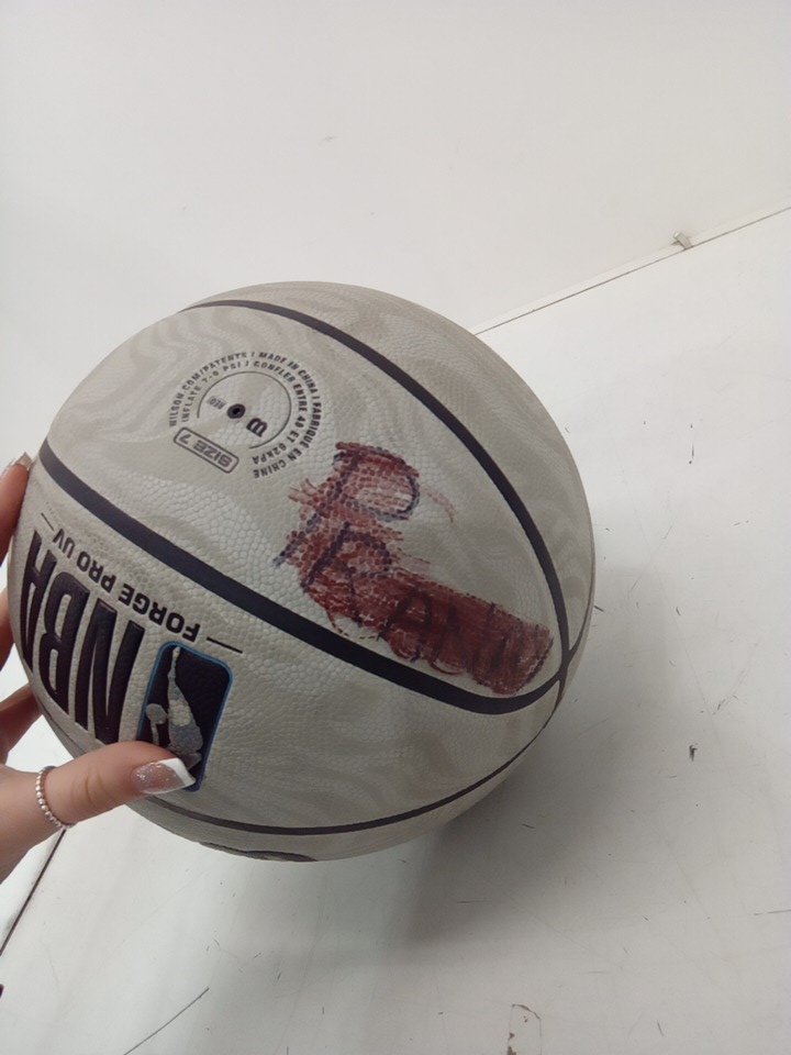 ball has been marked with someone's name and light dirt on ball from use.