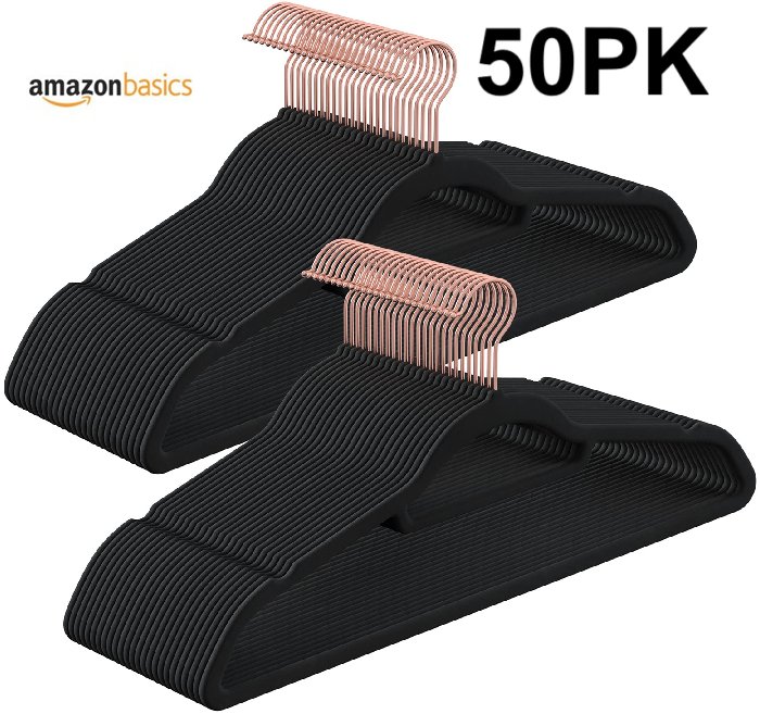 50PK Amazon Basics Velvet Non-Slip Suit Clothes Hangers - Black/Gold