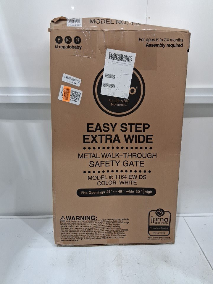 REGALO EASY STEP EXTRA WIDE METAL SAFETY GATE - 30" x 29" - 49" - WHITE (MODEL: 1164EwDS)