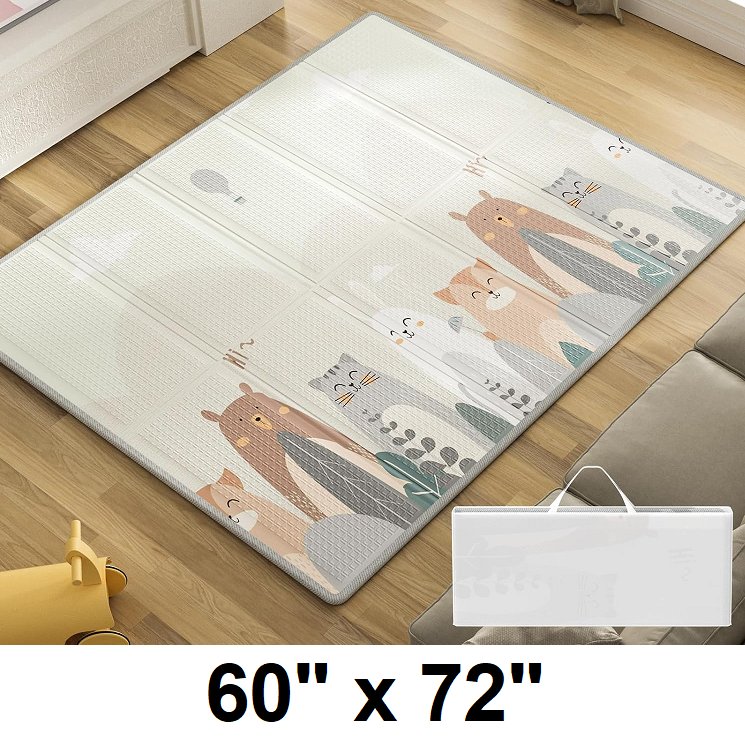 Uanlauo Baby Play Mat with Carry Bag - 60" x 72" - white/animal print