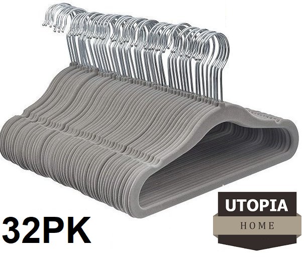 32PK UTOPIA HOME VELVET NON-SLIP CLOTHES HANGERS - GREY