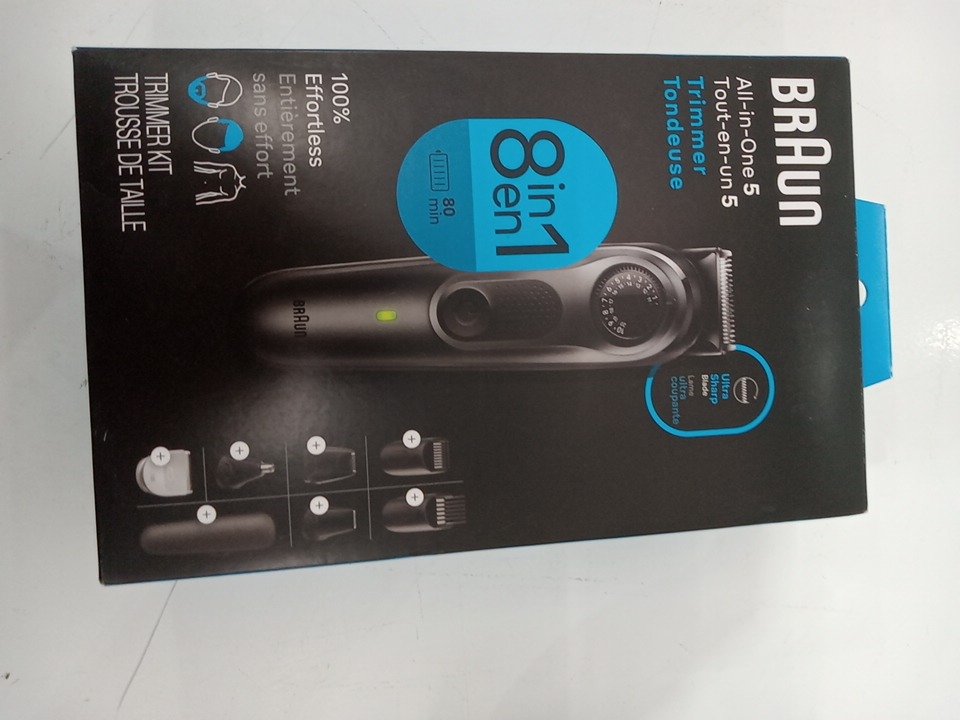 BRAUN ALL-IN-ONE STYLE KIT - 8-IN-1 TRIMMER KIT AND HAIR CLIPPER SET with ULTRA SHARP BLADE and 40 LENGTH SETTINGS - GREY/BLACK (MODEL: AIO5471)