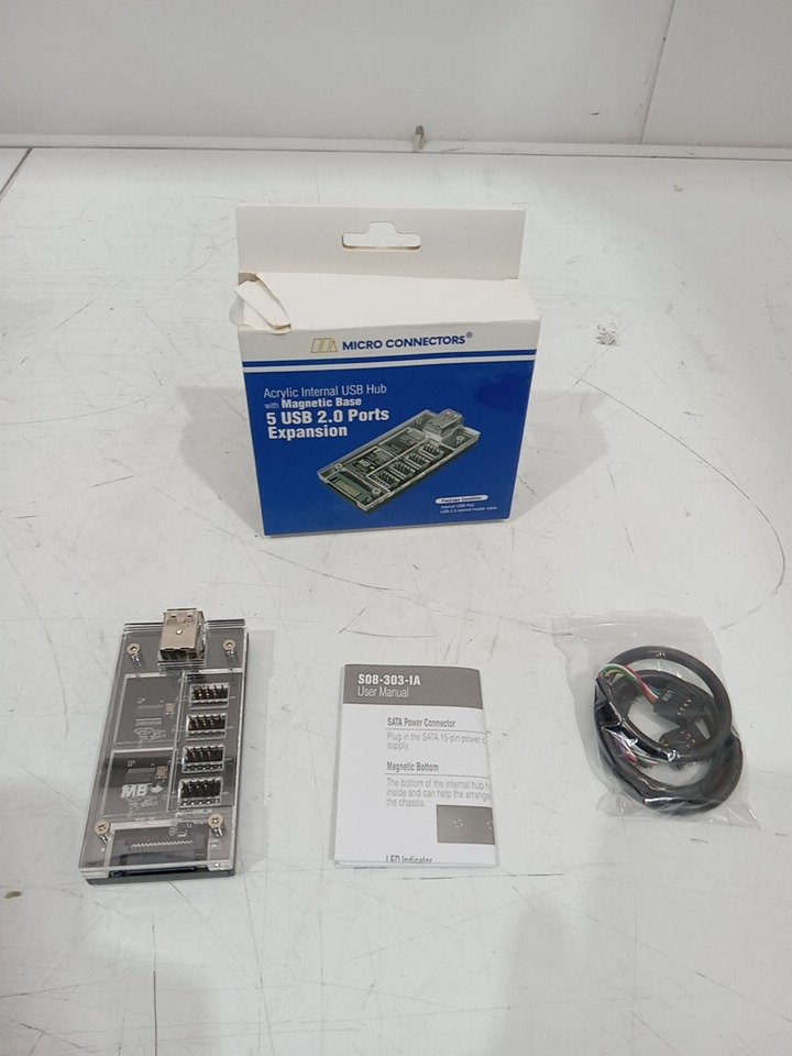Micro Connectors Acrylic Internal USB 2.0 Hub with Magnetic Base - 5 USB 2.0 Ports Expansion - (model: S08-303-IA)