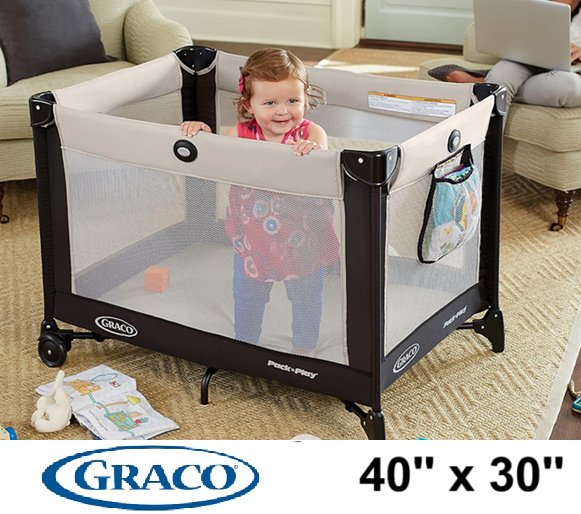GRACO PACK 'N PLAY PORTABLE PLAYARD - 40" x 28" x 30" - OAKLEY FASHION / BLACK/GREY (MODEL: 2084226)