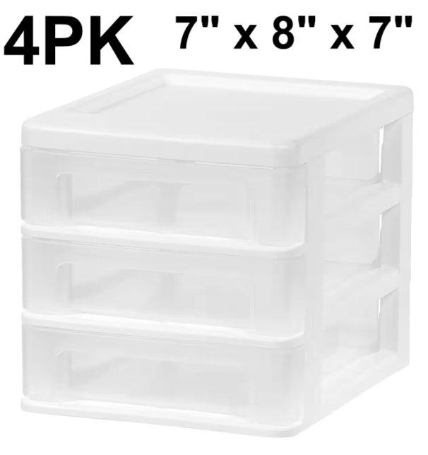 4PK IRIS 7" Clear Tabletop Storage Drawers - clear