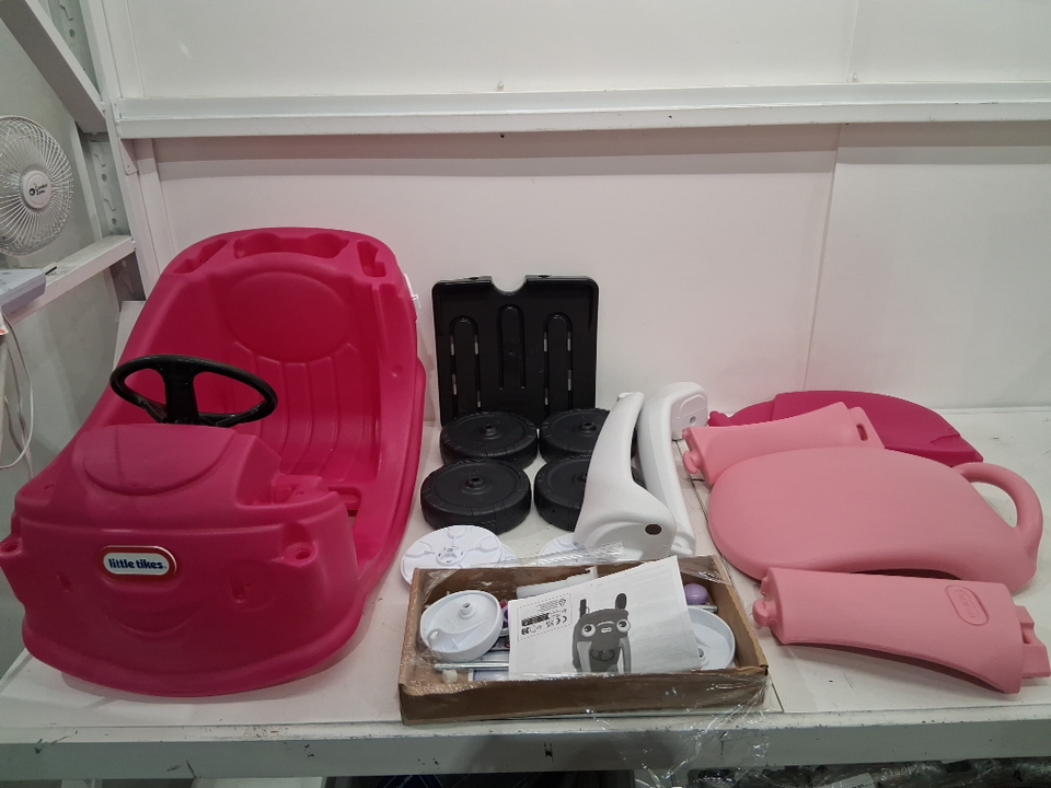 Please note: • The small box with the screws/generic hardware had spilt into the box. The pieces have been collected and bagged but not all pieces could be verified. All major pieces are accounted for. • The car shows signs of previous use with scuff marks/wear on the plastic, see photos.